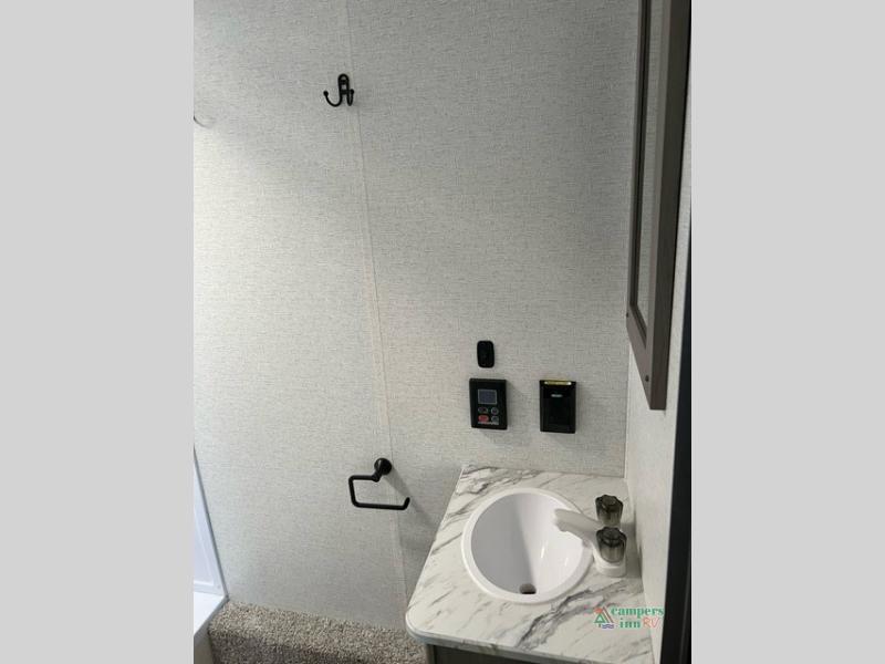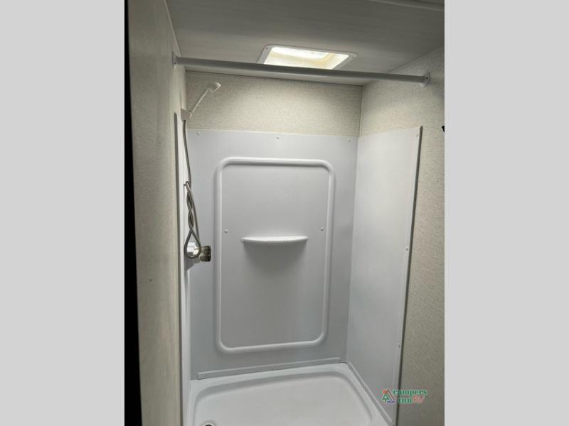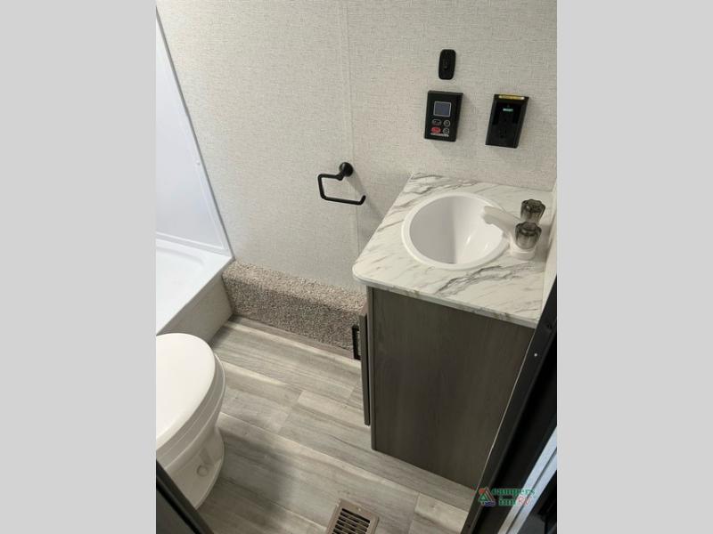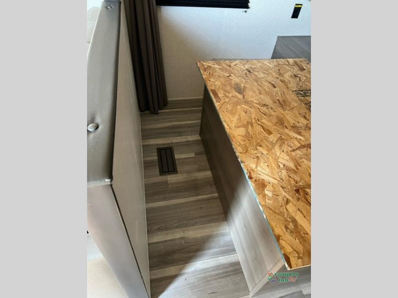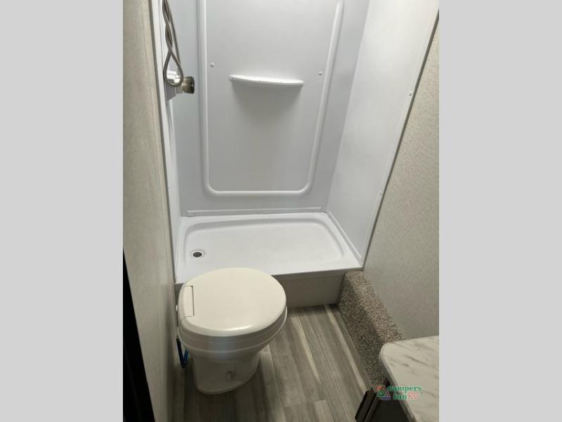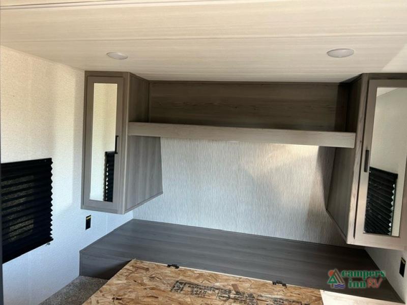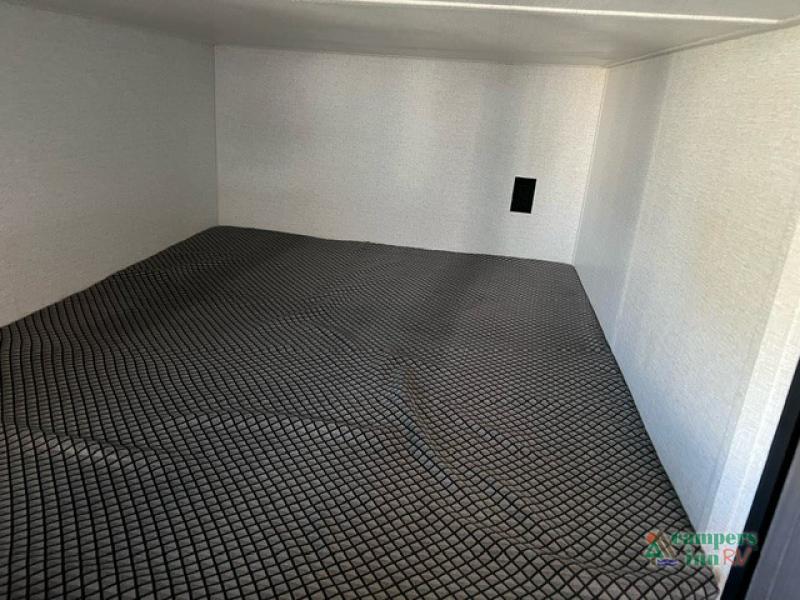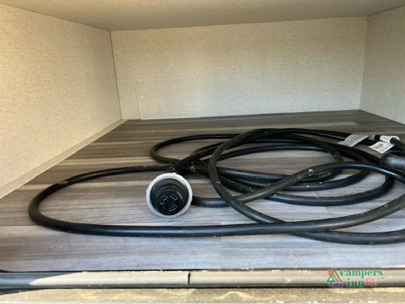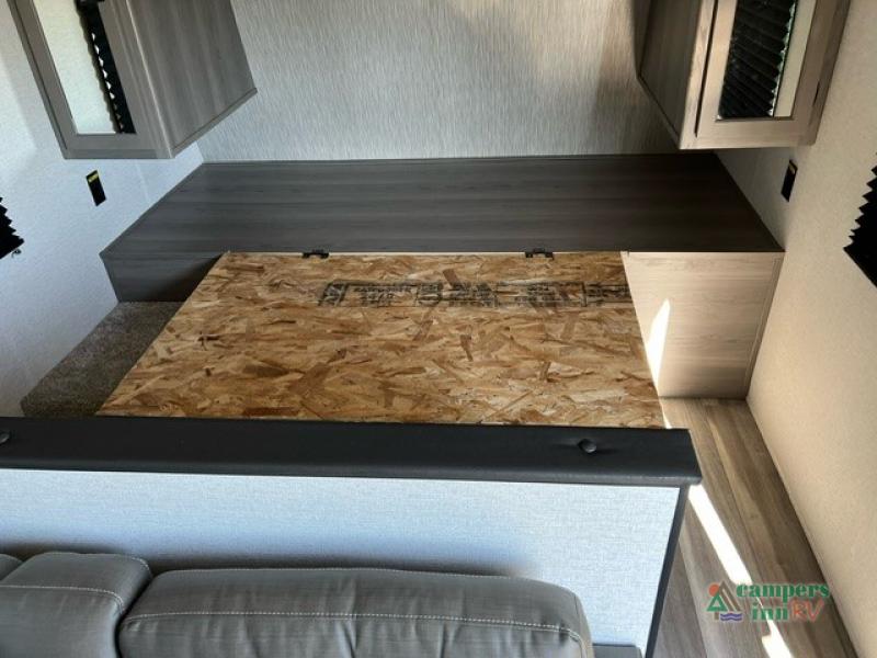 If you're looking for a travel trailer with a little more sleeping space, look no further than this Hideout Sport! There are double-size bunks with inside and outside storage, a walk-around queen bed in the front bedroom, plus a sofa and booth dinette for even more sleeping space. The kitchen comes with a two burner cooktop to cook meals on, a sink for clean up, and a 10 cu. ft. 12V refrigerator to store the milk and eggs. You will also find TV prep in this model if you enjoy movie nights while at the campground.