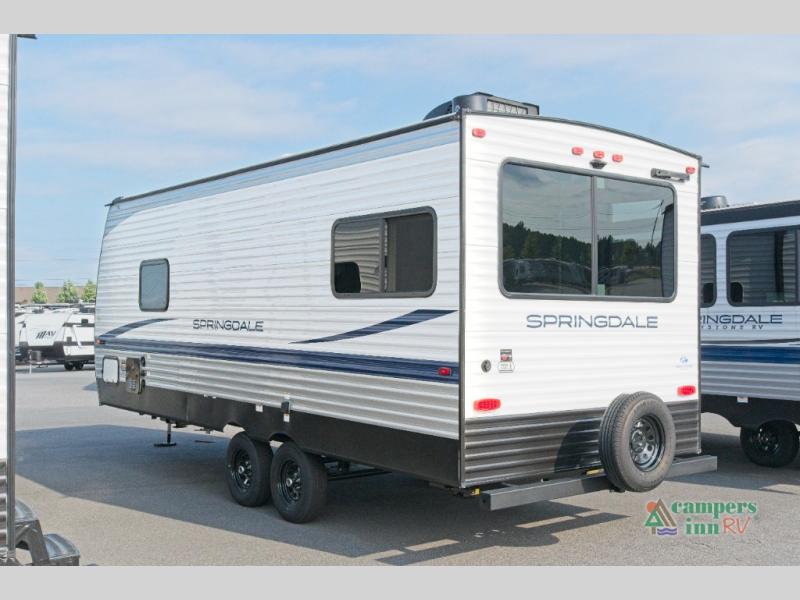 The Springdale Classic 200RLC is the perfect travel trailer for couples or small families looking for comfort, convenience, and affordability. With sleeping space for up to six, this compact unit features a semi-private front bedroom with a queen bed, dual closets, and nightstands for added storage.