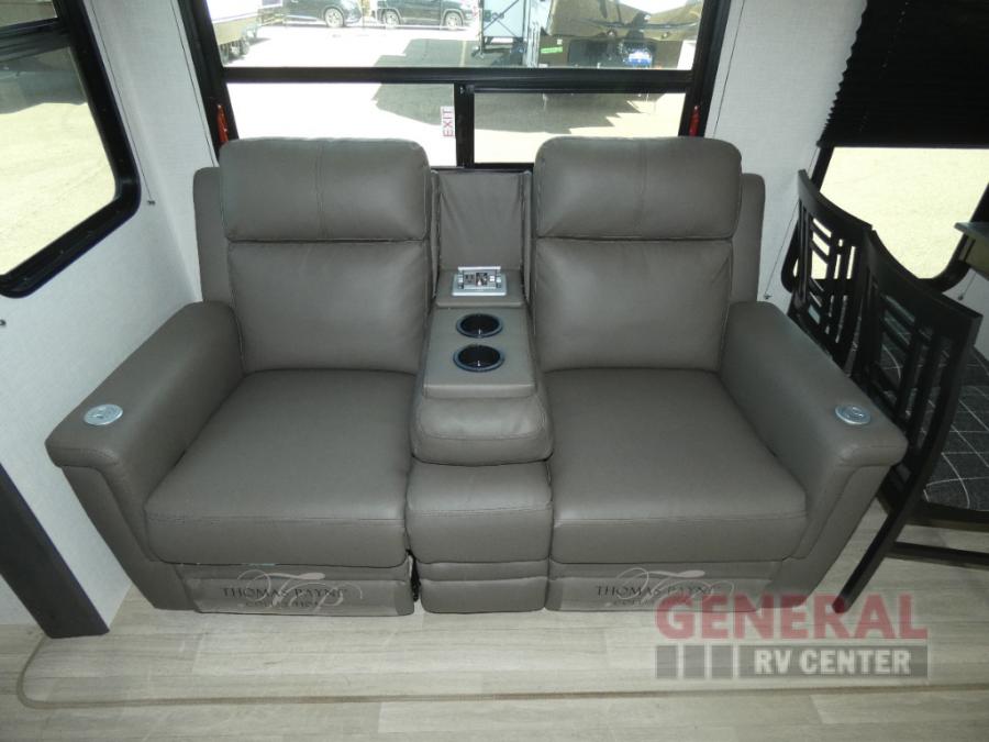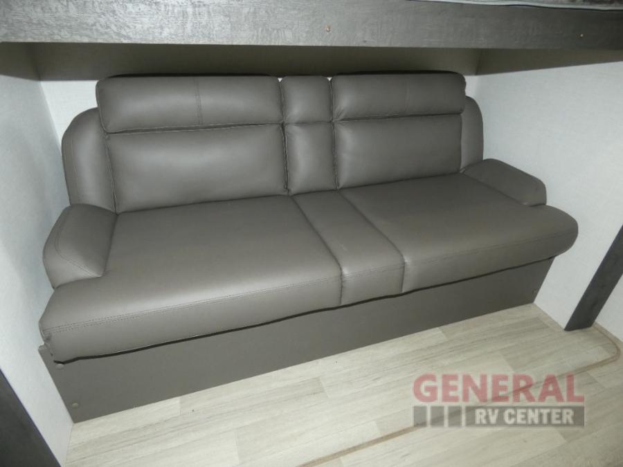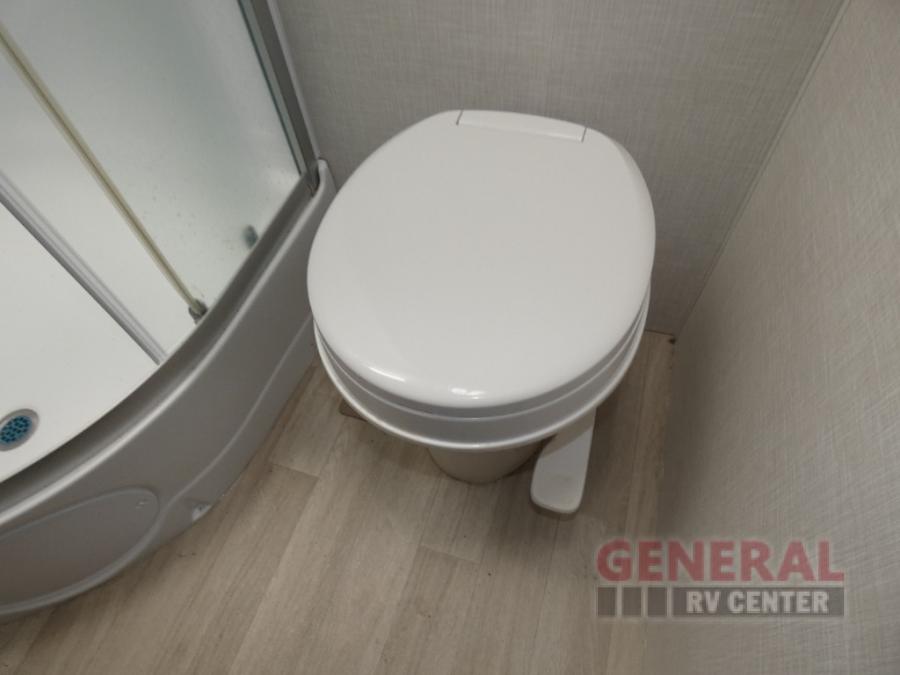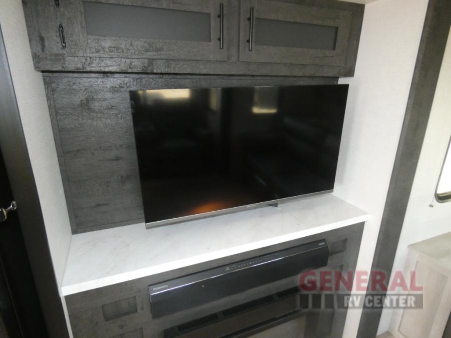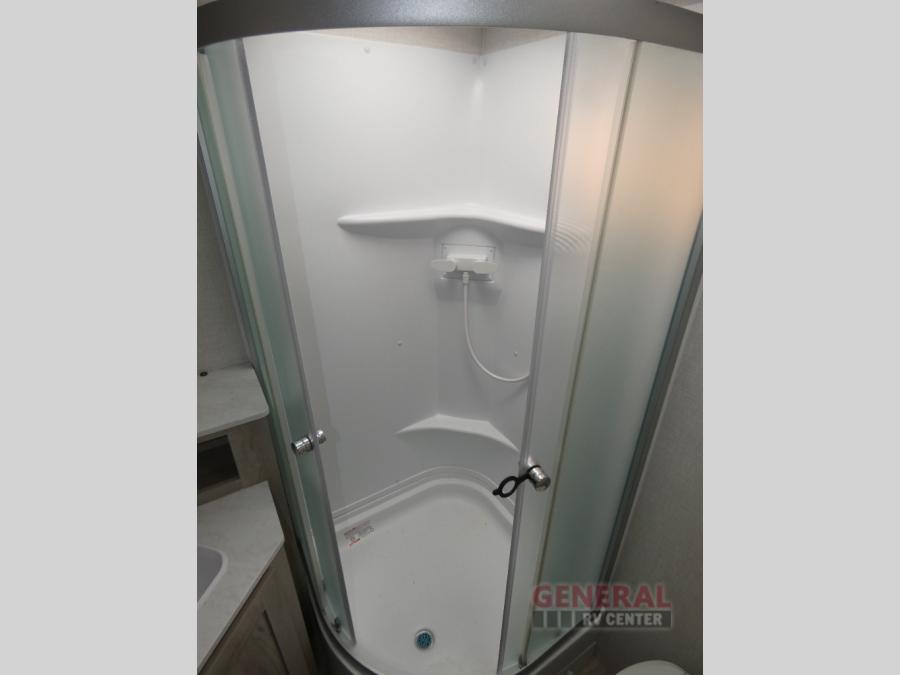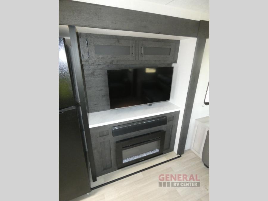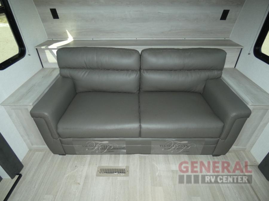 The whole gang will enjoy living in this destination trailer! You will have your own privacy with the rear private bedroom which has a king bed slide across from a dresser with an LED TV and a wardrobe. Everyone can freshen up in the full bathroom with a radius shower and keep their bellies full with a three burner cooktop. The table and chairs offer a comfortable place to enjoy your meals and play card games.