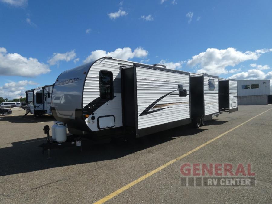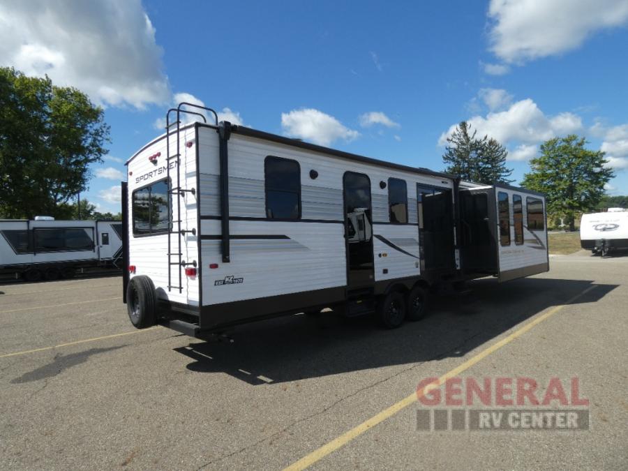 Enjoy a home away from home with any one of these KZ Sportsmen destination trailers or fifth wheels! The one-piece, seamless fully walk-on Tufflex roofing material and the 5/8" tongue and groove plywood floors with residential grade linoleum enclose the units. A super sized panoramic slide room window lets you look out at your beautiful surroundings. The mandatory KZ Advantage package adds extra convenience with features like the leash latch with bonus beverage opener, and an A/C RV airflow system to keep you cool. The Climate package has a heated, insulated, and enclosed underbelly so you can camp later into the year. Come find the right one for you!