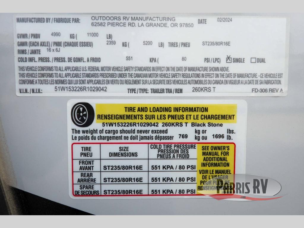 Outdoors RV Black Stone Titanium Series travel trailer 260KRS highlights: