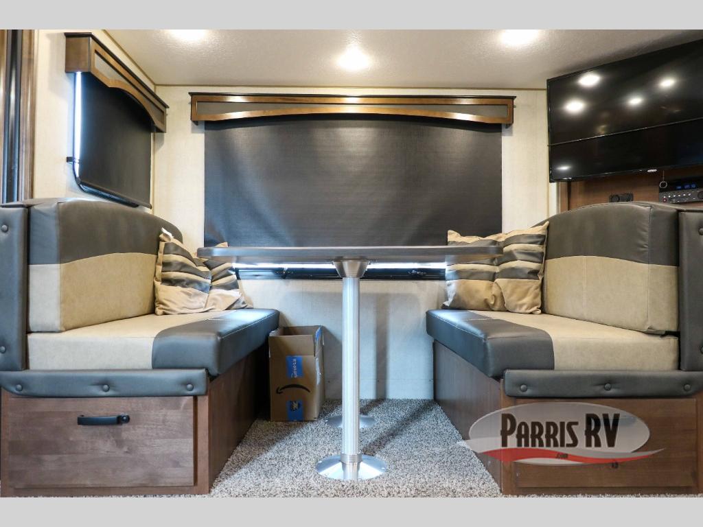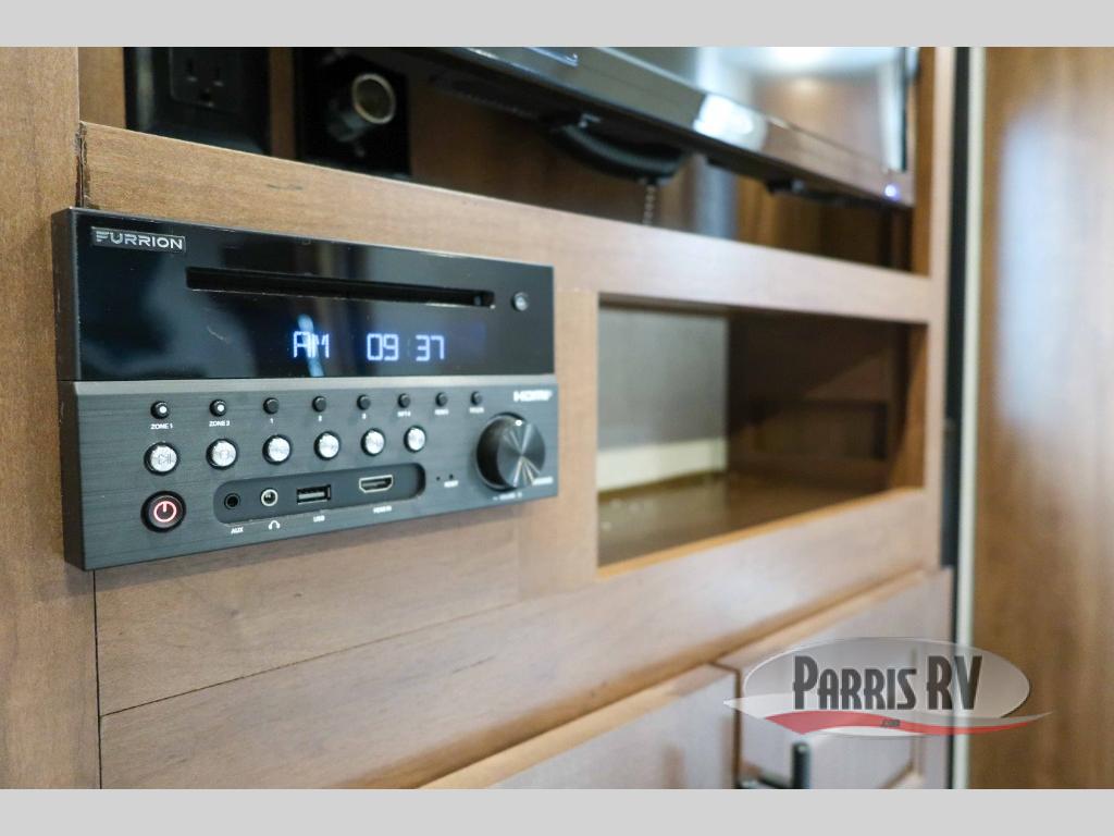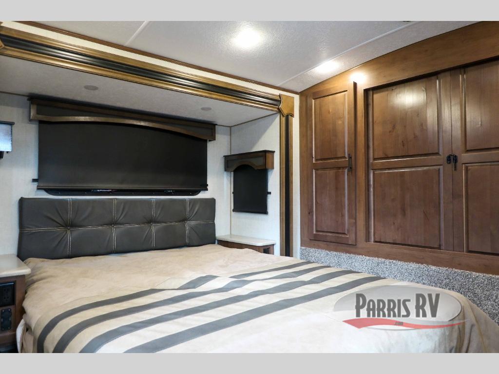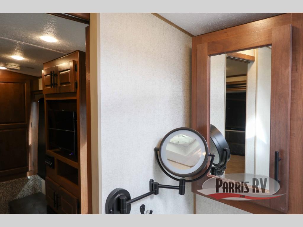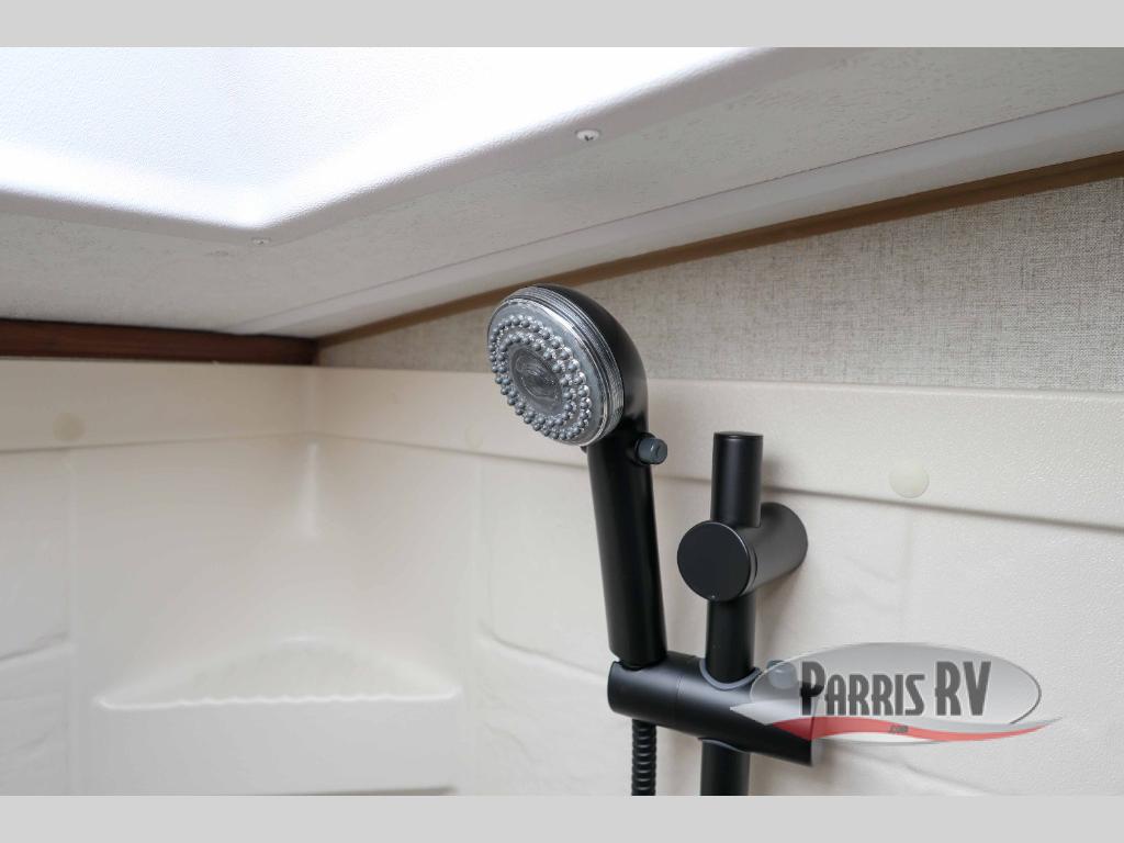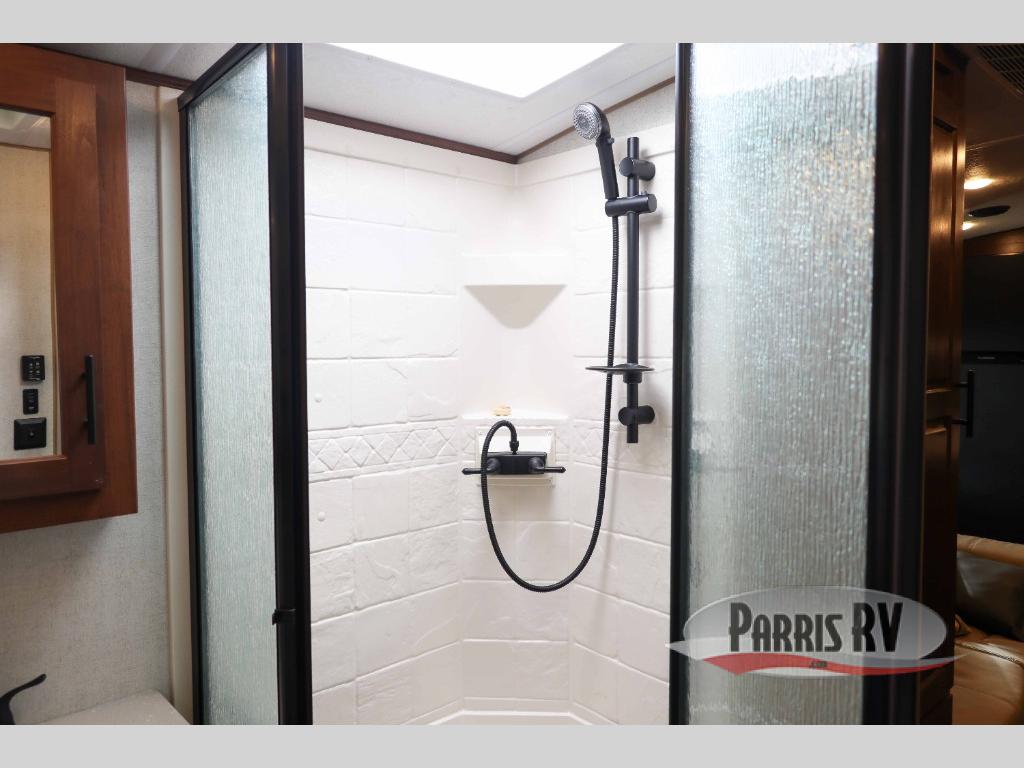 This rear kitchen travel trailer is made spacious thanks to the mountain dinette slide out in the main living area and the queen bed slide out in the front bedroom. You will also find a bench hamper and front wardrobe in the bedroom, along with your own exterior entry door. A sleeper sofa provides more sleeping space in the middle living room and the 40" TV will let you enjoy movie nights. And don't overlook the rear kitchen with plenty of counter space, a farm sink, and a sunken range with a glass front.
