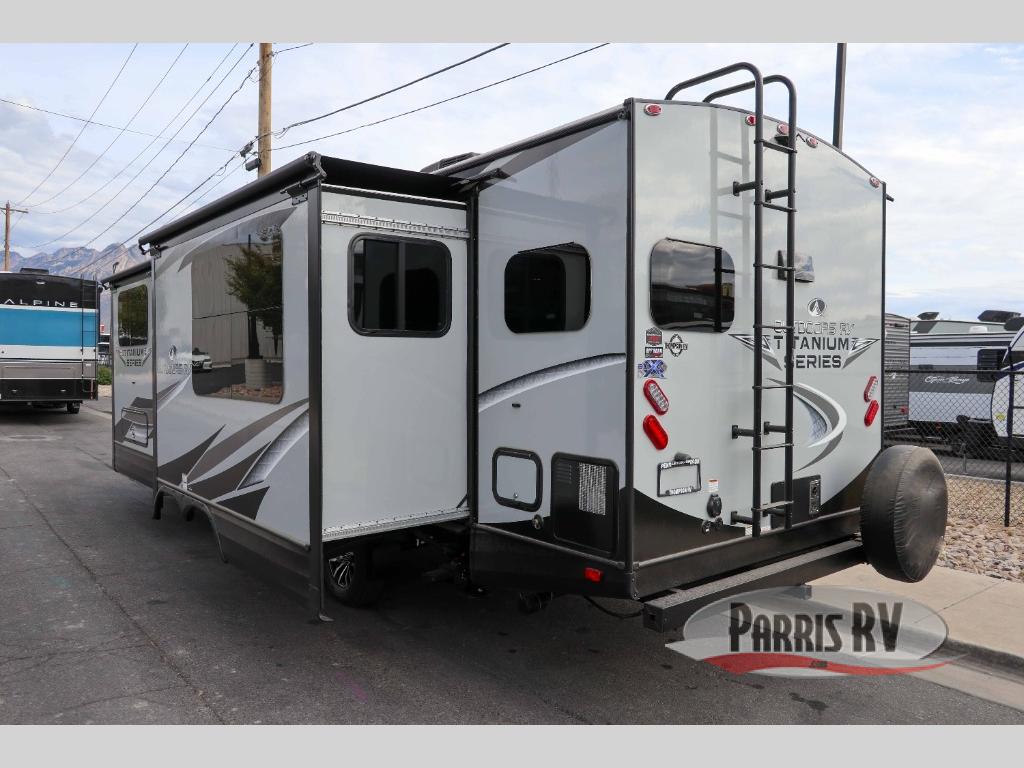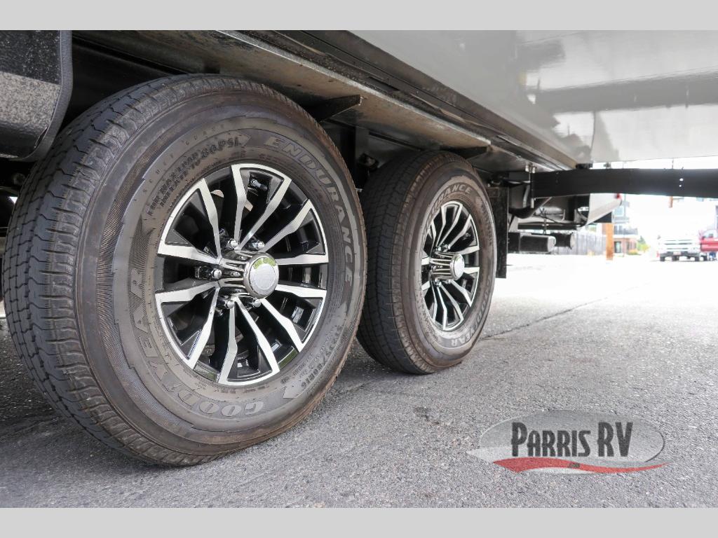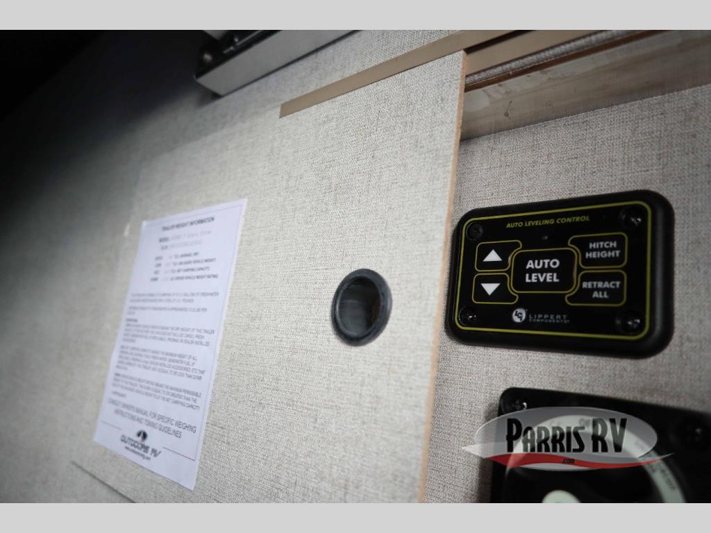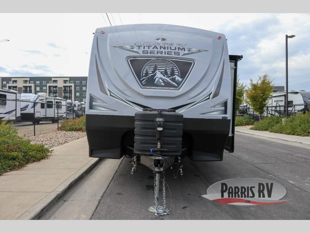 With any Black Stone Titanium Series travel trailer by Outdoors RV you will enjoy the sleek design frameless thermal pane windows, along with the silver fiberglass front cap and Titanium Series graphics package. The rugged 8' chassis with 5,200 lb. axles and XL ground clearance will make maneuvering tougher terrain easier than ever, and there is a ground control TT auto leveling system for hassle-free set-up. Each model includes LG solid surface countertops, mountain lodge interiors, hardwood slide out fascia(s), and many more comforts!