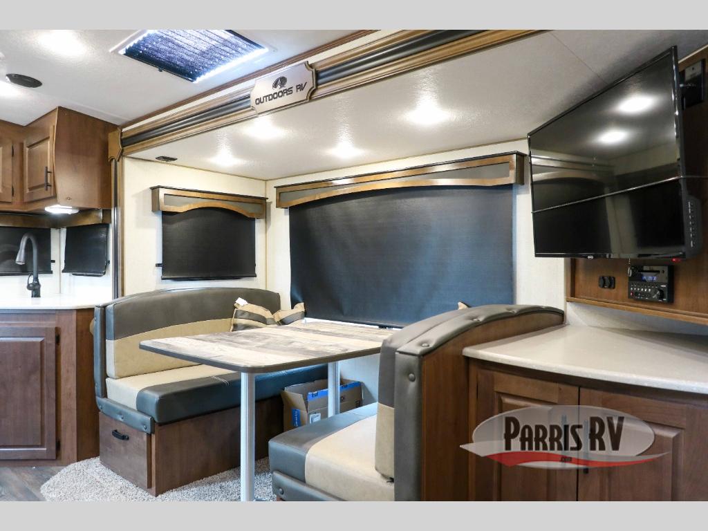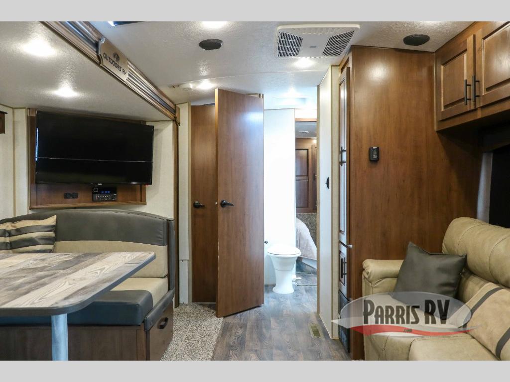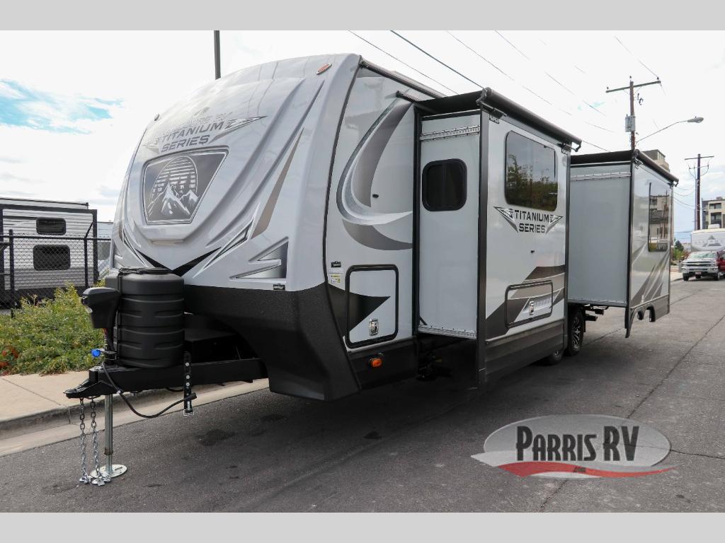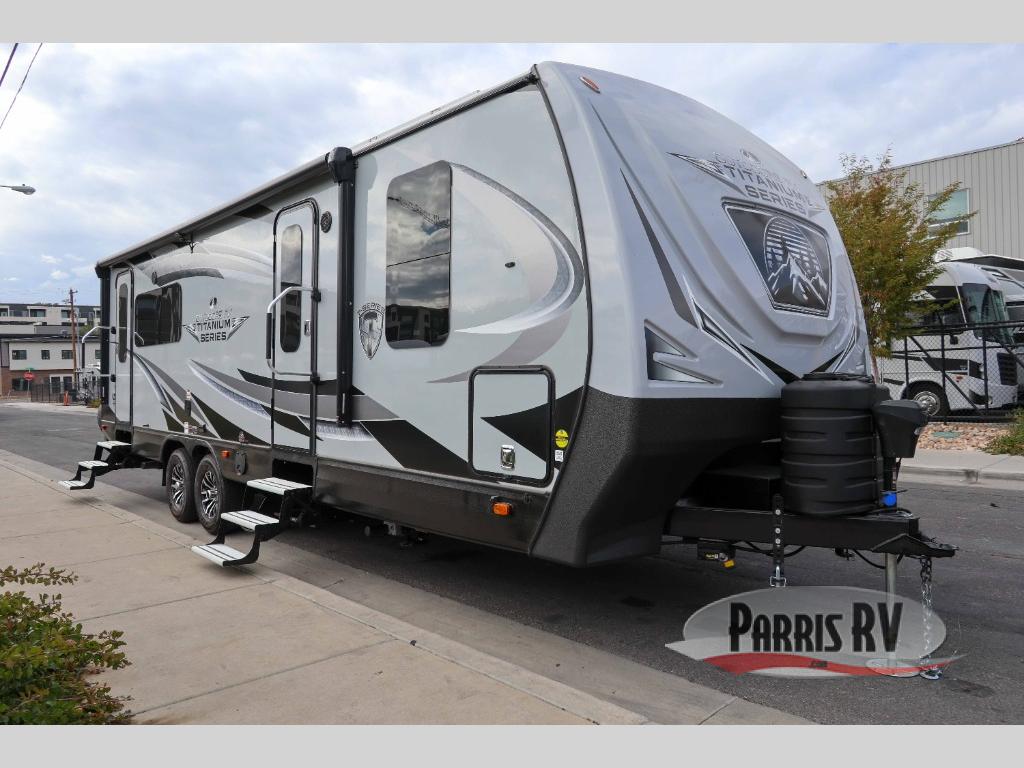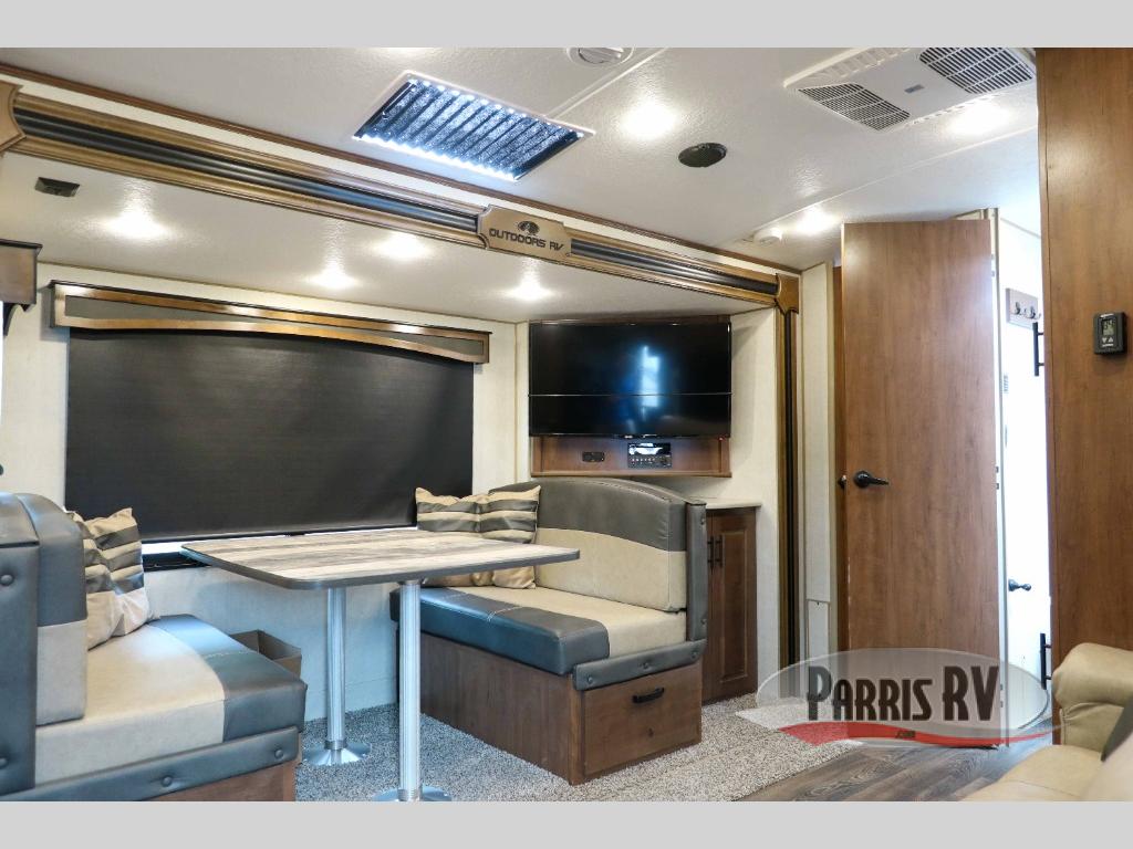 With any Black Stone Titanium Series travel trailer by Outdoors RV you will enjoy the sleek design frameless thermal pane windows, along with the silver fiberglass front cap and Titanium Series graphics package. The rugged 8' chassis with 5,200 lb. axles and XL ground clearance will make maneuvering tougher terrain easier than ever, and there is a ground control TT auto leveling system for hassle-free set-up. Each model includes LG solid surface countertops, mountain lodge interiors, hardwood slide out fascia(s), and many more comforts!