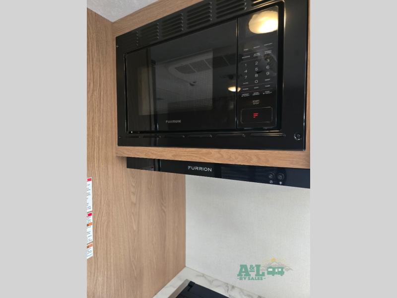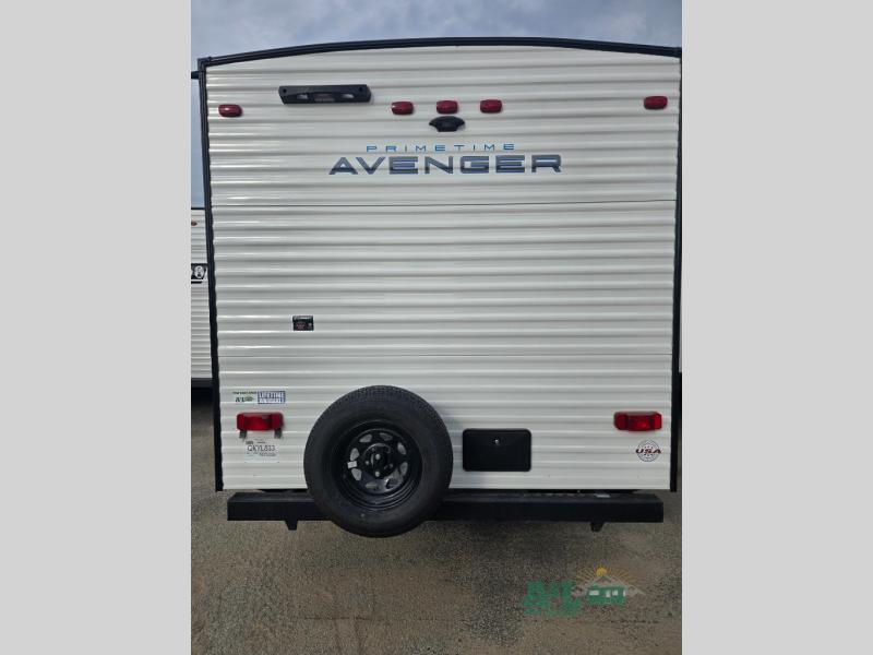 With any Avenger LT travel trailer by Prime Time, the exterior includes an aerodynamic front profile, a front diamond plate for protection on the road, and two rear stabilizer jacks. The interior offers seamless Carefree Congoleum flooring for easy cleanup and durability, pleated night shades throughout for privacy, a bottle opener, and extended ball bearing drawer guides. Other features include a 16,000 BTU furnace, a gas DSI water heater, a residential soundbar, and each has been prepped for a back up camera and solar.