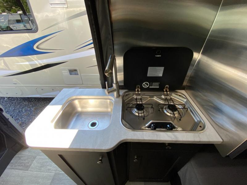 The Roadtrek Class B gas motorhomes are built upon the stylish Ram ProMaster 3500 chassis with a 3.6L V6 gas engine to power your trips near and far. The Uconnect 5 HD radio with Apple Car Play and Android Auto will make the drive just as sweet as the destination. Each model includes a 12V refrigerator, a two-burner recessed propane stove with a flush cover and built-in igniter, and ample storage space for all your belongings. The Firefly coach control system monitors the water, propane, battery charge levels, battery disconnect, and generator hour meter for your convenience. There are even solar panels to go off the grid, an outdoor shower to rinse the dirt off your feet before entering inside, and a retractable awning to protect you rain or shine. Come find your favorite one today!
