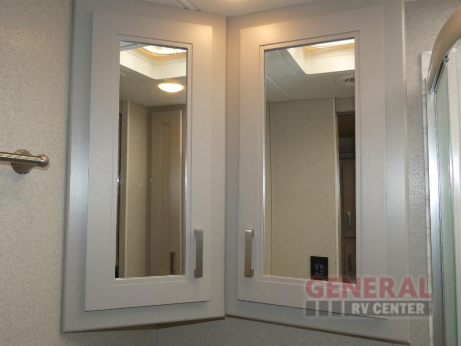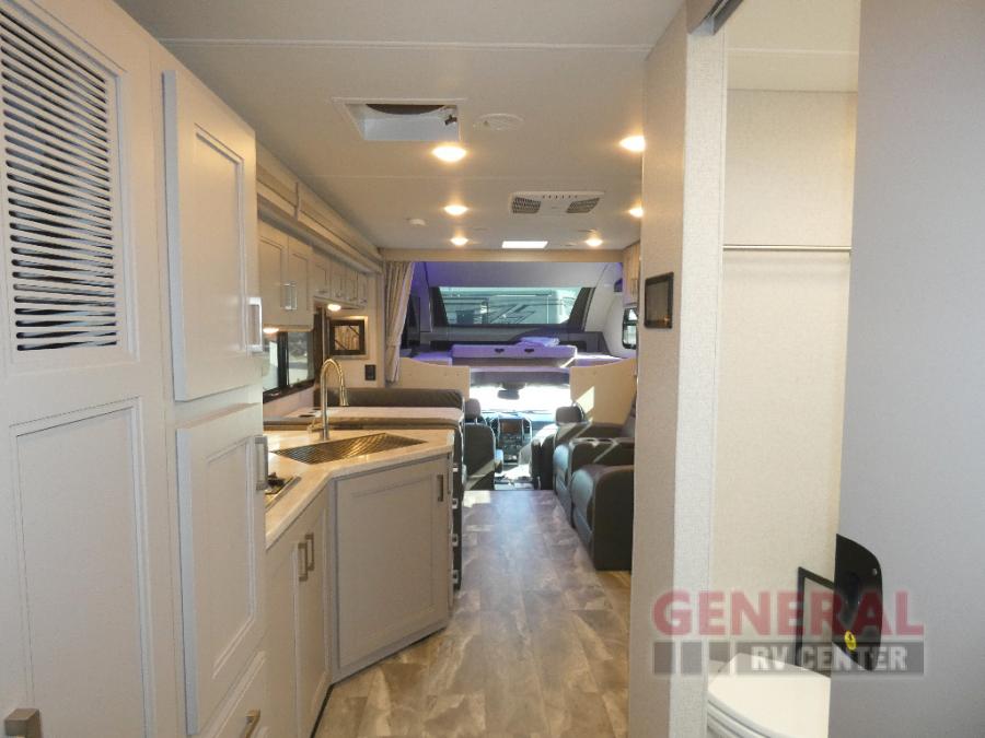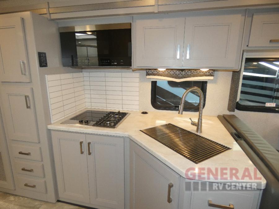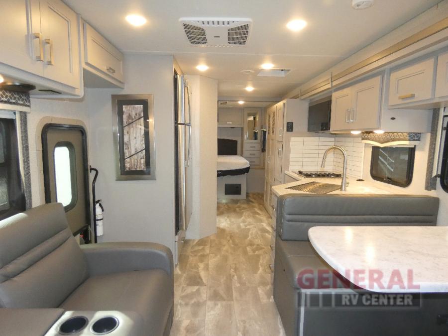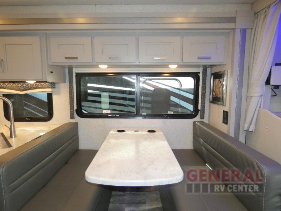 The Omni Super C diesel motorhome by Thor Motor Coach starts with a durable welded tubular steel floor, vacu-bond laminated roof, walls, and floors with block foam insulation, and a full-body paint package with gel-coat sidewalls. Each model includes either a F550 or F600 Power Stroke 4 x 4 Turbo Diesel engine that will allow you to maneuver tougher terrain when the adventure calls for it. The cockpit is every captain's dream with its power adjustable driver's seat, side view and back-up camera system, heated remote exterior mirrors, and more. You can control all of your coach's functions with the RapidCamp+ multiplex wiring control system, and the Winegard ConnecT Wi-Fi extender with 4G will allow you to stay in touch with the outside world as you travel. Each model includes residential linoleum throughout, Leatherette furniture, solid surface countertops in the kitchen, and a glass shower door for that added touch of luxury. Come see all the other great features the Omni Super C diesel motorhome has to offer!