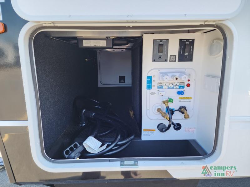 With any Model Z Air travel trailer by Brinkley, you will enjoy premium features at every turn. The industry-first low maintenance roof is sure to be appreciated, plus there are industry-first brass plumbing connections for excellent resistance to corrosion. The drop-frame chassis with over 45 cu. ft. of exterior storage will allow you to bring along camp gear galore, plus there are motion lighting and power outlets for added convenience! You'll also find two hot/cold showers outdoors, along with a 370-watt solar panel, a custom LP box with locked battery storage, and a premium utility center with a retractable 65' water hose to wash off mud from the lake. The interior is just as accommodating with its solid surface countertops, Brinkley CraftSense wood trim construction, integrated window screens and insulated blackout blinds, and the list of luxury features goes on!