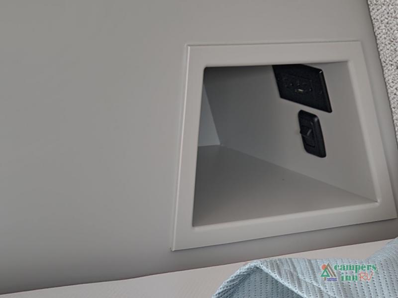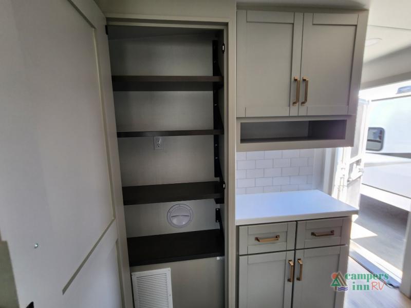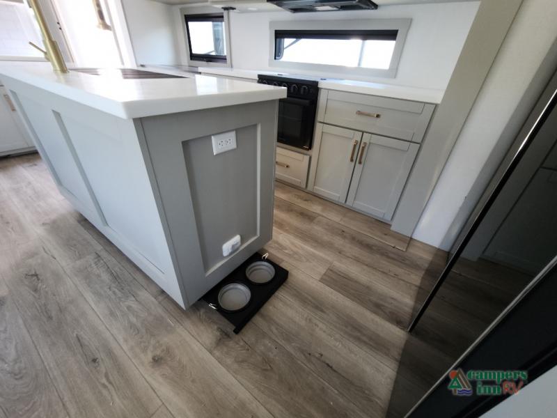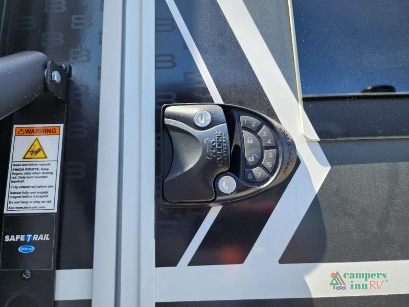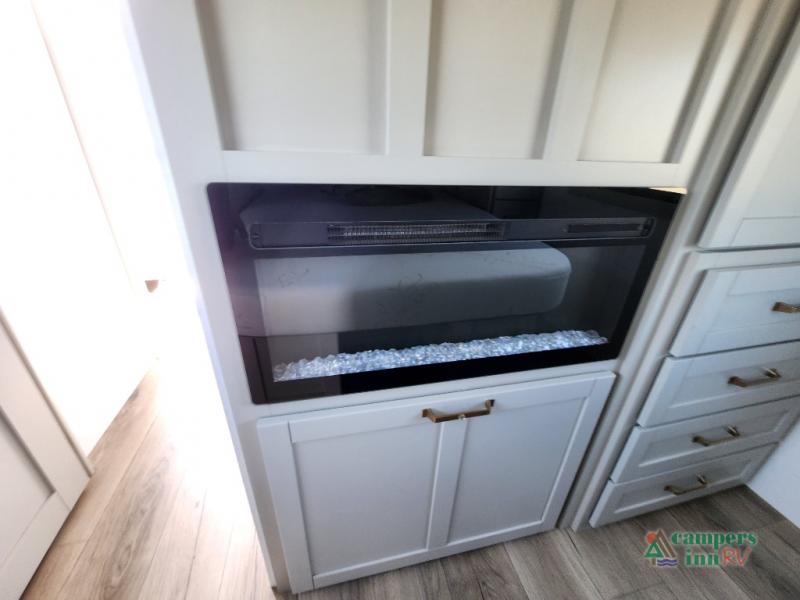 You are going to love every adventure in this cozy coach! In front, a private bedroom awaits you each night providing a comfortable place to get a good night sleep with built-in bedside and under bed storage including outlets and USB ports for your electronics. There are four drawers under the bed, two on each side for more clothing storage. There is also a fireplace in this room as well. A full bath next to the bedroom includes a 30" x 42" one-piece fiberglass shower so you can stay clean and refreshed throughout your trip. The combined kitchen and living area at the rear of the unit will be a favorite place to visit together since there is theater seating and a dinette with bench seat and two chairs. In the slide opposite, you will find a television and fireplace, that makes two fireplaces! You will also enjoy the kitchen island with bar stools, along with additional kitchen counter space, a pantry with adjustable shelves, and a spacious 16 cu. ft. refrigerator that can still open when the slide out is in. Head outside to find a drop-frame pass-thru storage and rear storage, two patio awnings, LED chassis lighting, quad step entry, and more!