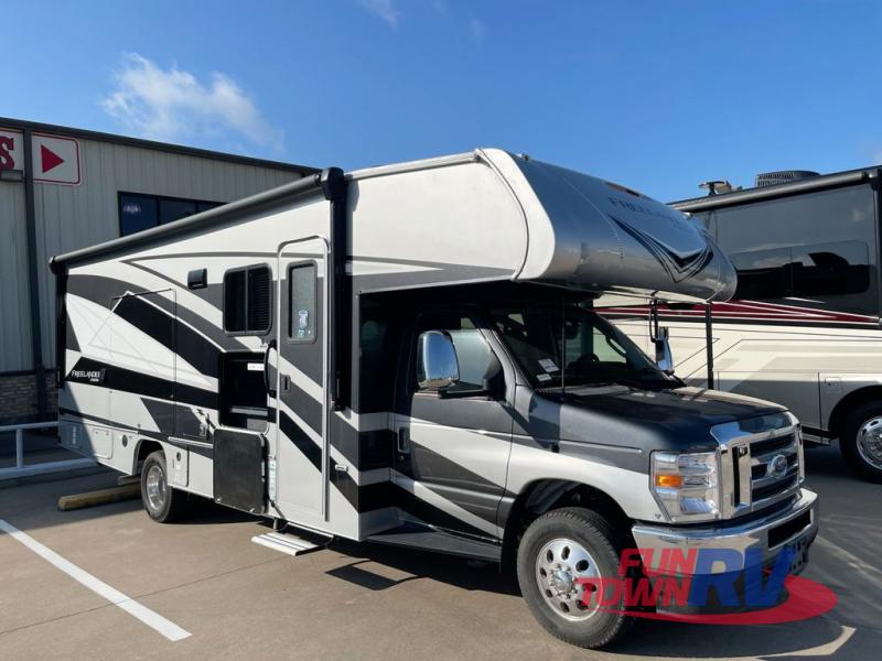 The Freelander Class C gas motorhome by Coachmen is a wonderful choice for anyone looking to get out on the road. A wide variety of floorplans and features offers something for everyone. The Azdel composite sidewalls and seamless one-piece roof membrane provide a solid structure to enjoy all your trips. Conveniences like storage above entrance door with an HDMI and charge station and reclining cockpit seats are standard, along with a rear color backup camera, a premium showerhead and faucet, and one-piece thermofoil countertops. The mandatory Explorer Package includes an exterior shower to rinse off before entering inside and an on-demand tankless water heater for hot water fast. Come find your favorite one today!