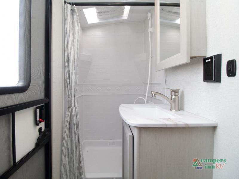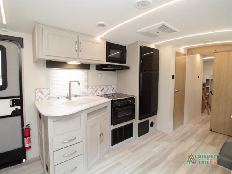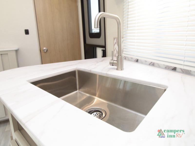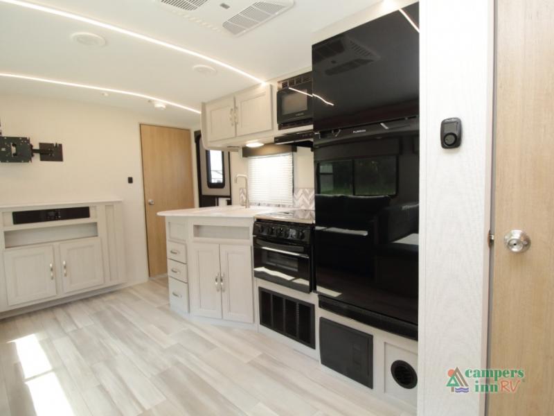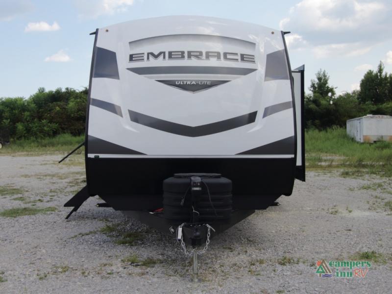 Built to last, the Embrace features a painted front cap with LED lighting, one-piece TPO roof membrane, heated and enclosed underbelly, and heavy-duty axles with 15" tires. Inside, you’ll enjoy seamless countertops, concealed cabinet hinges, modern LED lighting, and residential-style touches that make you feel right at home.