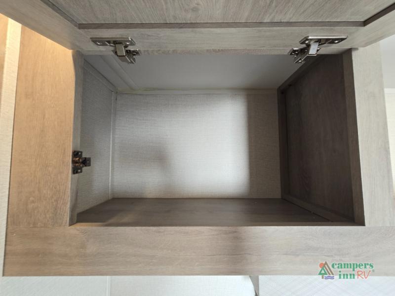 Even with its compact size, the Embrace EL17BH offers ample storage solutions. Under-bed storage, overhead cabinets, and exterior pass-through storage make it easy to bring along all your camping essentials, from gear to groceries.