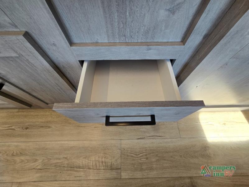 The 2025 Cruiser Embrace EL17BH boasts a sleek, modern interior that feels open and inviting. With premium finishes, LED lighting, and plenty of windows, this RV feels bright and spacious, making it the perfect place to relax after a long day.