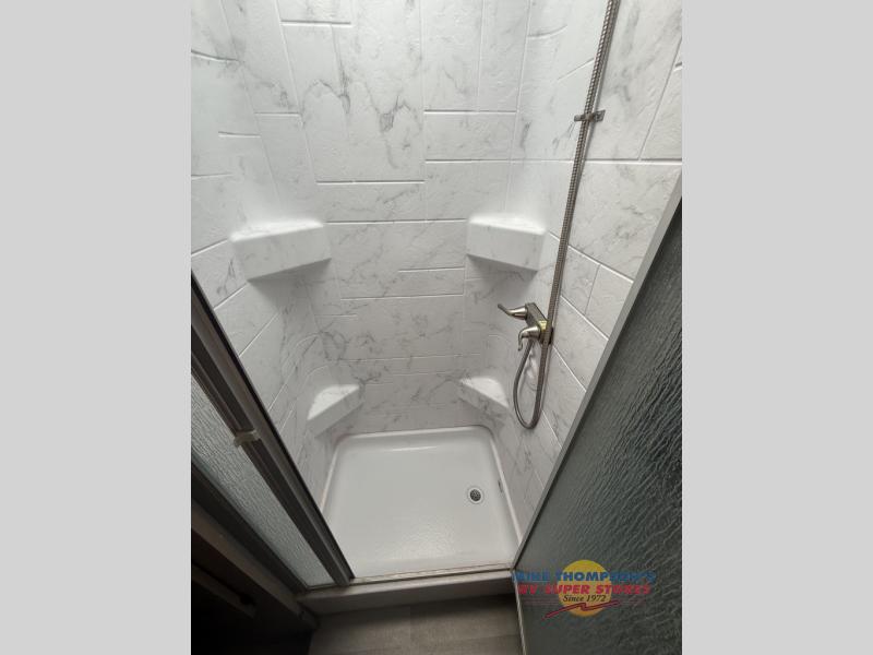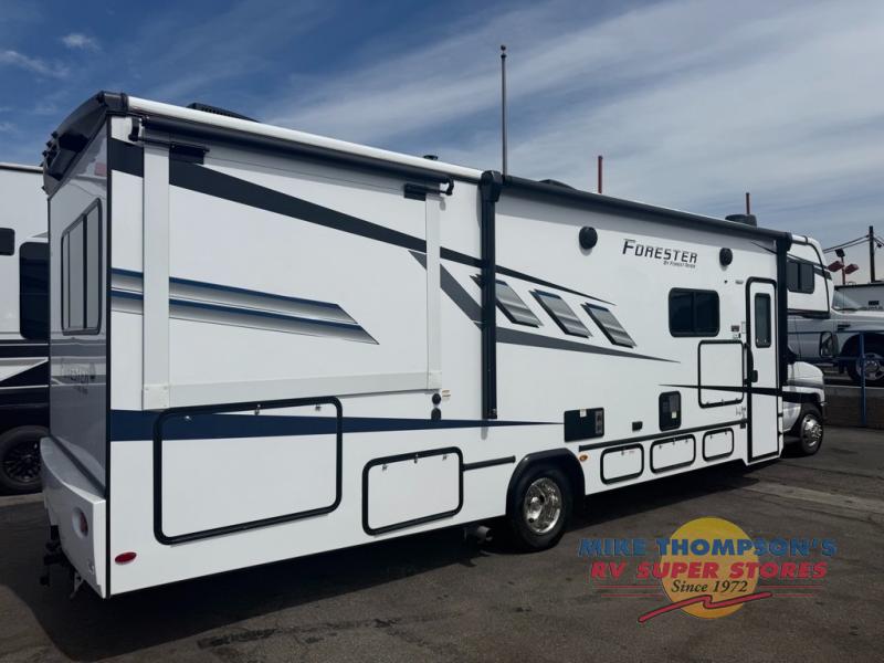 With any Forester Classic Class C gas motorhome by Forest River you will enjoy comfort at every turn! They offer a smooth ride with the EZ Ryde premium suspension system, and the ultra leather captain's seats will ensure comfort wherever you go. There are heated, enclosed holding tanks and valves plus block foam insulation to enjoy four-seasons camping, and the gel coat exterior fiberglass is slick and easy to keep clean. A keyless entry comes standard for your convenience, along with a color back-up camera and side view cameras with a 3-way monitor for added safety when parking. The Forester Classic motorhomes also include a Maxx Air multi-speed power fan with a cover, a shower skylight, a cordless 12V charging plate, plus black out roller shades for privacy any time.