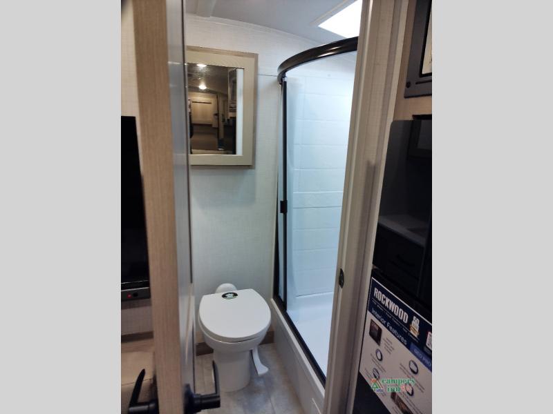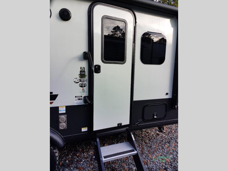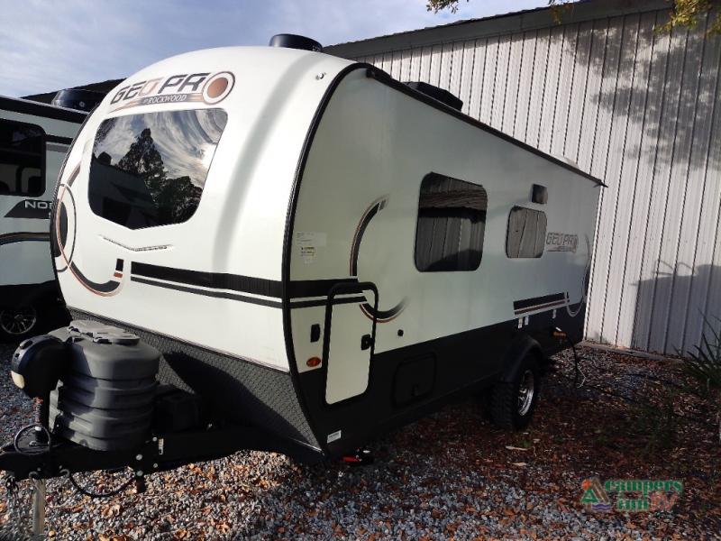 With any Rockwood GEO Pro travel trailer by Forest River you will enjoy easy towing, durable construction, and off-road capabilities with larger 15" tires and a lift kit! Each model is constructed with complete composite wall construction for added strength and durability, and the torsion axle, Rubber-Ryde suspension will make towing easier than ever. Inside, you'll find sleek roller shades for added privacy, a 12V refrigerator and a microwave, plus a 20,000 BTU furnace to keep you warm during the colder camping months.
