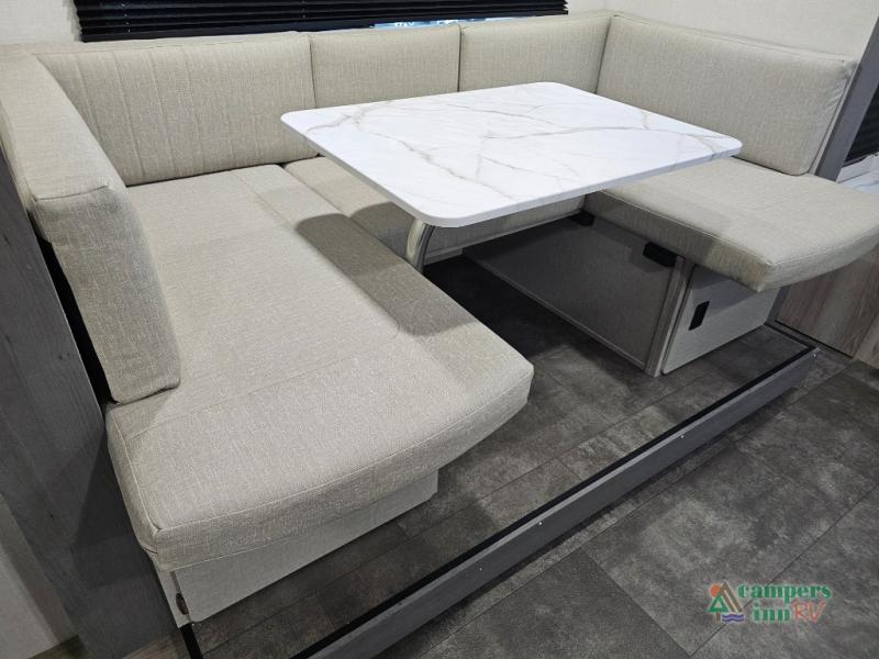 U-shaped dinette slide converts to an additional sleep space for extra flexibility