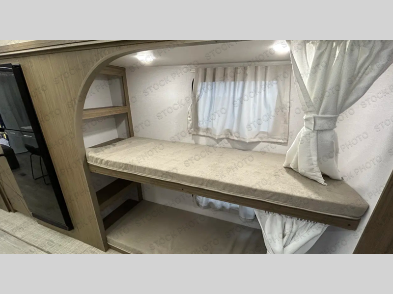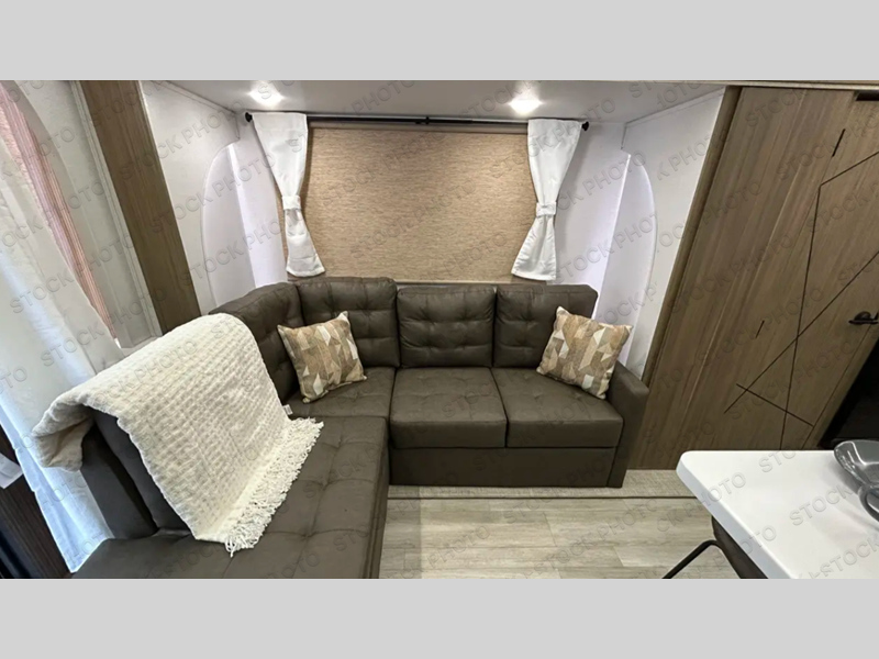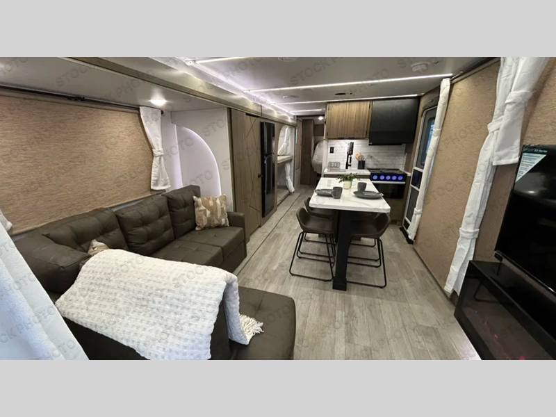 From the moment you step inside, the Salem Veranda 34 impresses with its bright, open floorplan and home-like design. The front living area offers large panoramic windows, plush seating, and a deluxe entertainment center that’s perfect for cozy evenings in. The kitchen is built for real cooking, featuring residential-style appliances, solid surface counters, and abundant storage. A private rear bedroom provides a peaceful retreat with ample wardrobe space and a comfortable sleeping area, while the spacious bathroom offers a full shower, vanity, and linen storage for everyday convenience. Perfect for extended stays or seasonal living, this destination trailer lets you travel in total comfort and style.