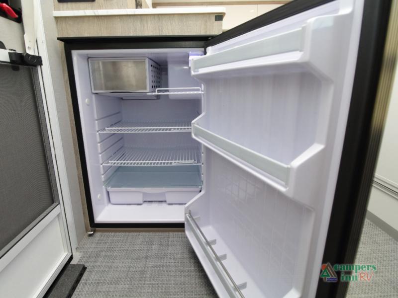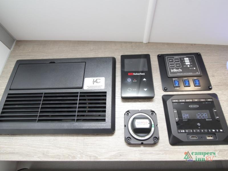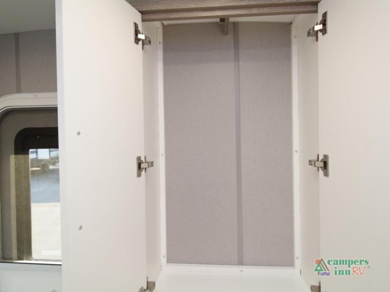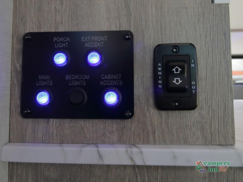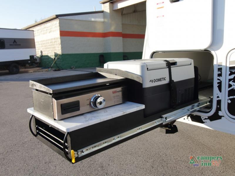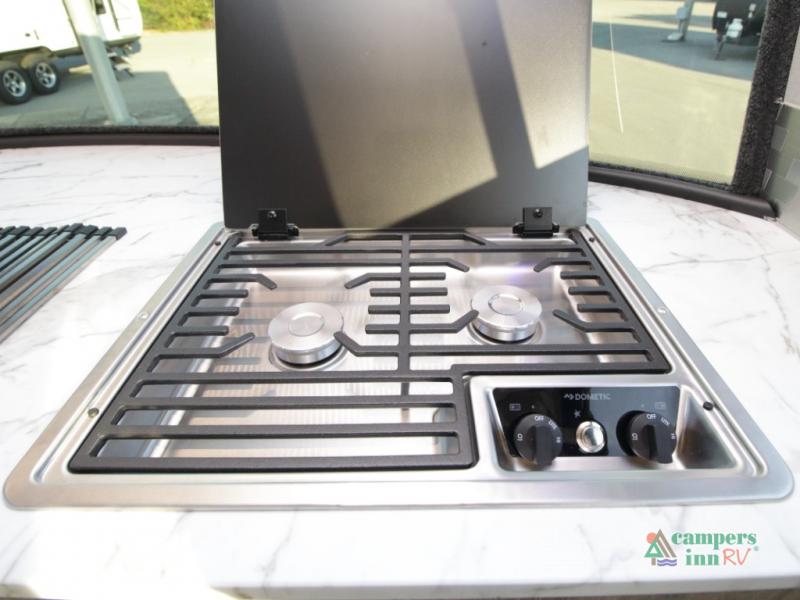 Step inside a refined interior featuring tinted windows with roller shades, Infinity woven flooring, and premium stainless steel appliances. The 15,000 BTU A/C and 16,000 BTU furnace ensure year-round comfort no matter where your adventures take you.