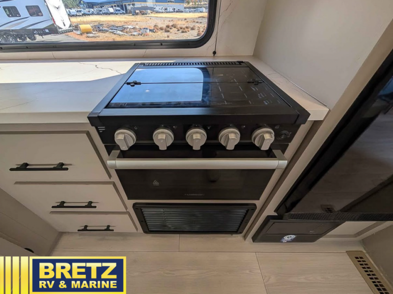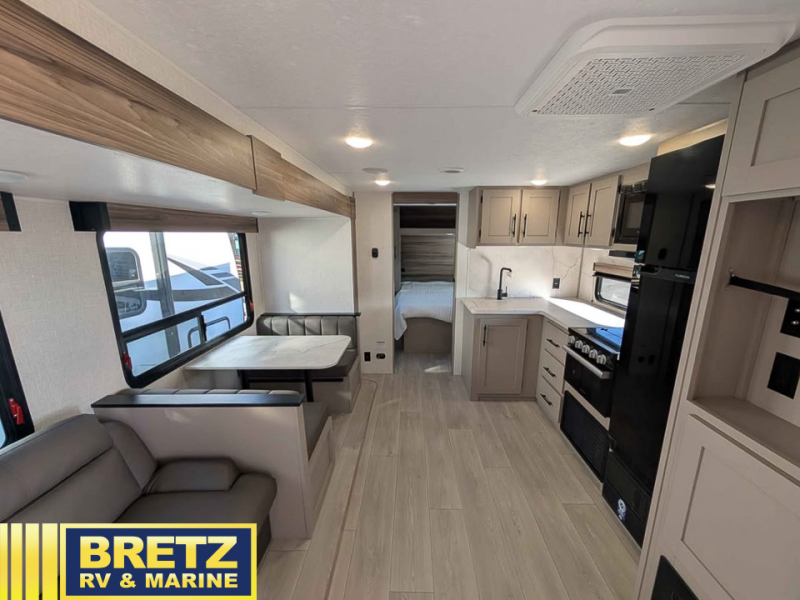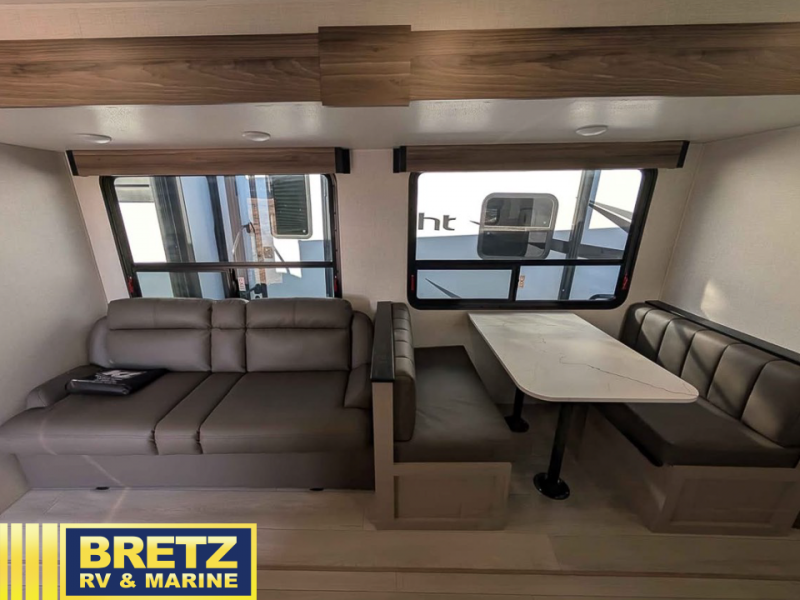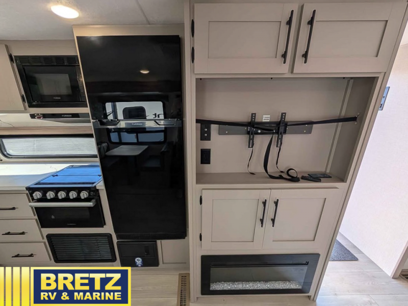 Headed to the RV park with your family and friends? Want enough space to allow overnight guests to stay the night on occasion? This trailer gives you double-size bunks, a 70" sofa and a booth dinette that offer extra sleeping space while you enjoy your own walk-around queen bed in the front private bedroom. You will also have dual wardrobes, and a TV mount to add your own TV. Everyone will stay refreshed and cleaned using the rear corner full bathroom, and fed by the cook that has an inside kitchen with full amenities including an L-shaped counter and a large sink. There is also a walk-in pantry with coat hooks next to the entry to utilize as a multi-purpose closet. And there is an outside kitchen with a griddle and a refrigerator, a 20' power awning with an LED light strip, and a pass-through storage for the larger camping items.