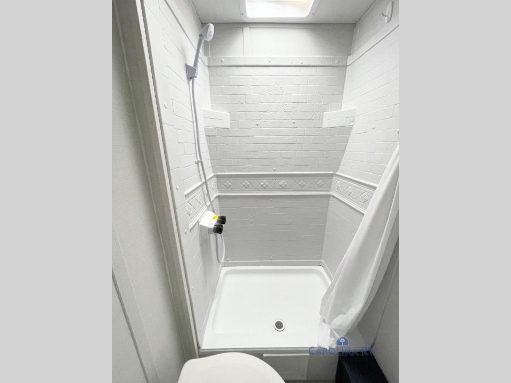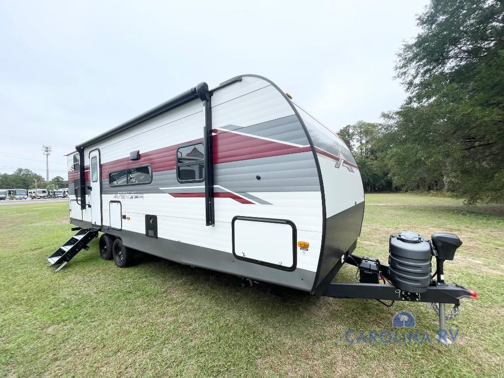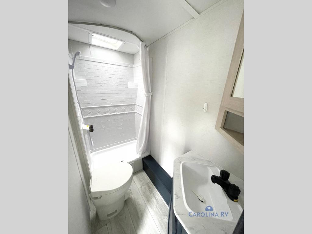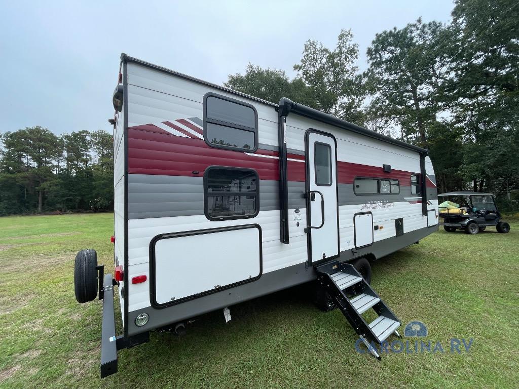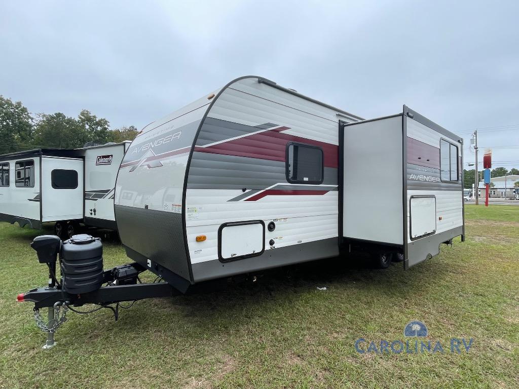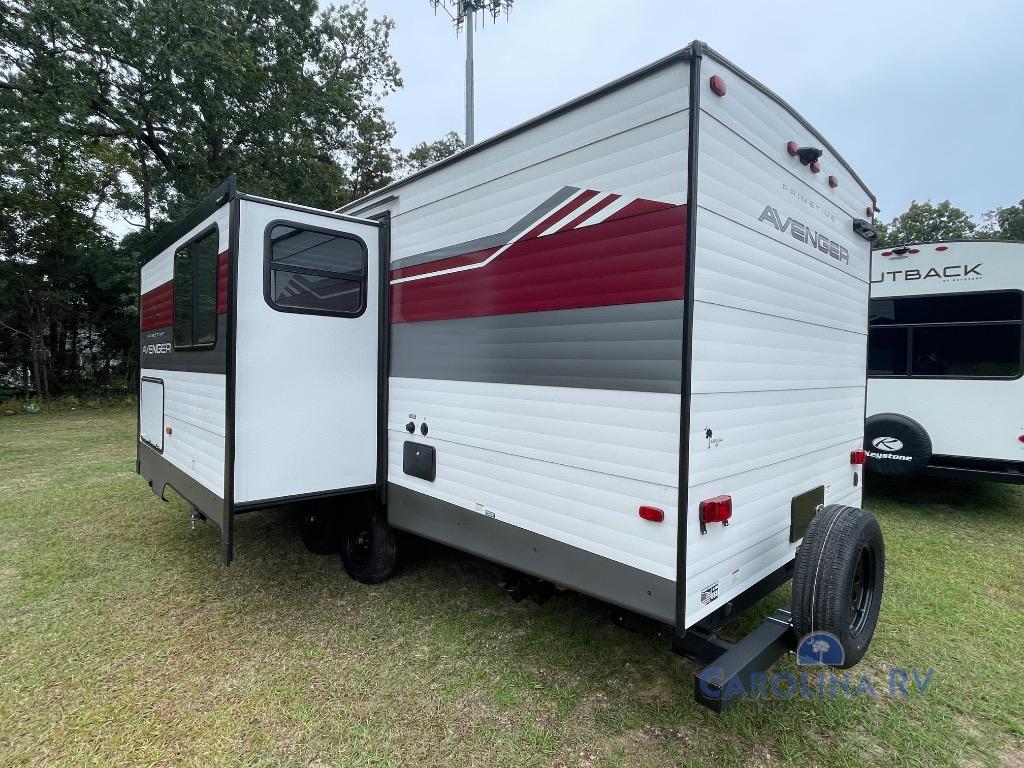 With any Avenger travel trailer by Prime Time, the exterior includes an aerodynamic smooth front metal, a diamond plate front rock guard for protection on the road, and four stabilizer jacks to keep your unit secure. There is a fully walkable roof plus an enclosed and heated underbelly that will help extend your camping season. The interior offers a 15,000 BTU air conditioner for the perfect climate inside, in-floor ducted heat, a systems monitor panel, and a Winegard 360+ antenna with Wi-Fi prep that will give you the option to stay connected as you camp. Each model also includes seamless Carefree Congoleum flooring, kitchen backsplash, shower pans in all models, and pleated nightshades throughout to name a few interior comforts!
