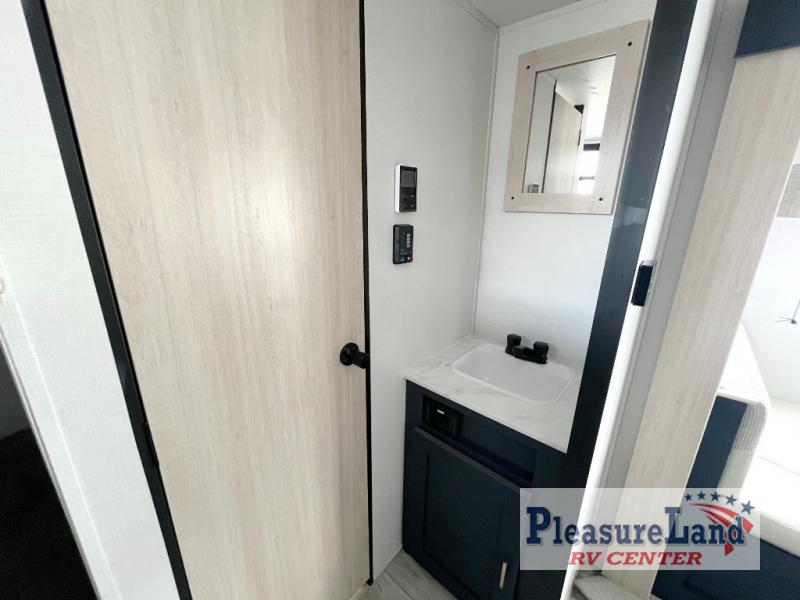 Looking for a trailer that houses everyone? This trailer offers lots of sleeping choices with a set of double-size bunks, a queen bed and furniture that doubles as sleeping space! You will also appreciate the added interior space thanks to the large slide in the living area that features a booth dinette and sofa. Up front, there is a private bedroom where you can retreat to at night away from the bunks in the back, and the bedroom features ample storage with dual wardrobes and an overhead shelf for your things.