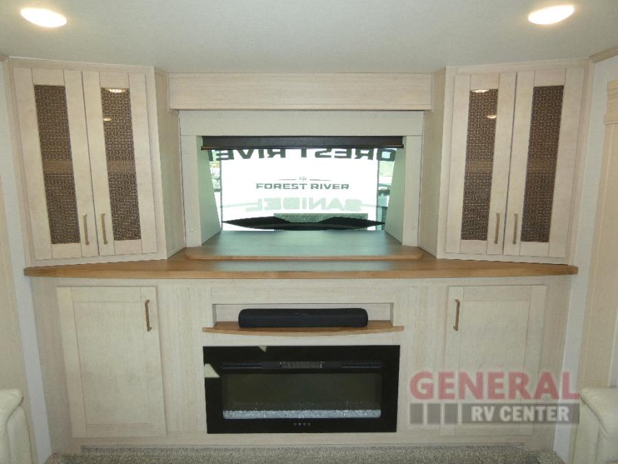 More luxury and more value is what you will find in each one of these Prime Time RV Sanibel fifth wheels! The Extreme Thermal package allows you to extend your camping season by including high density block foam insulation throughout, heated basement storage, and 12V heating pads on tanks. You can keep the party going with the electric awning with LED lighting and high-output exterior speaker, plus there is a Doggy D-Ring and bottle opener for added convenience. Each model also includes Dexter E-Z FLEX rubberized suspension to provide smooth towing on tougher roads, thick insulated pass-through baggage doors, and a high gloss gel coated exterior fiberglass for a more sleek look. Inside, you will enjoy residentially inspired kitchen appliances, real wood cabinet doors, designer Carefree linoleum with Scotchgard Technology, and many more luxurious features!