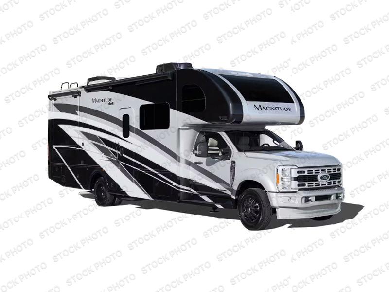 Make your journeys fantastic with the Thor Motor Coach Magnitude Super C diesel motorhome! Each model features a 4 x 4 turbo diesel engine, allowing you to tackle tough terrain! The powered sky view shade above the cab area will let you feel the sun's rays while you travel down the road, and the rearview mirror with a backup monitor, AM/FM and SiriusXM radio, and 8" color LCD touchscreen will make the drive that much easier. The 7' interior ceiling will accommodate passengers of any height, and the residential linoleum throughout will be easy to keep clean. The dual 13,500 BTU roof air conditioners will keep you cool on the hottest days in summer, and the Onan RV QD 6000 diesel generator will power your coach and all of its electrical functions. You will also find a Winegard® ConnecT™ Wi-Fi extender + 4G & TV antenna so you can stay connected wherever you roam!