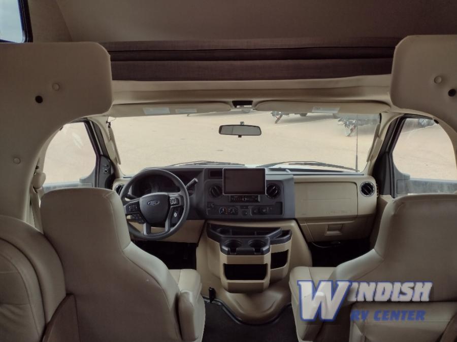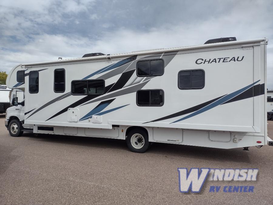 Experience a smooth ride to each destination with the Thor Motor Coach Chateau Class C gas motorhomes! There is a Ford E-Series chassis or optional Chevrolet chassis on select models, and each model includes an 8,000 lb. trailer hitch to bring the family car along. They are constructed with a welded tubular aluminum roof, sidewall cage construction, vacu-bond laminated roof, walls, and floor with block foam insulation to keep the heat and air conditioning inside. The slick fiberglass exterior with graphics package and black framed windows are sure to turn heads down the highway too. Inside, you'll be met with residential vinyl flooring, window privacy shades on select models, a power bath vent, and pressed laminate kitchen countertops. There is even a tankless water heater for endless hot showers, a 4.0 kw gas generator to keep you going, and solar prep for off-grid capabilities!