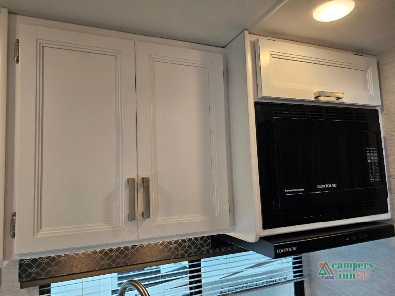 Cab-over bunk provides additional sleeping space for guests or kids