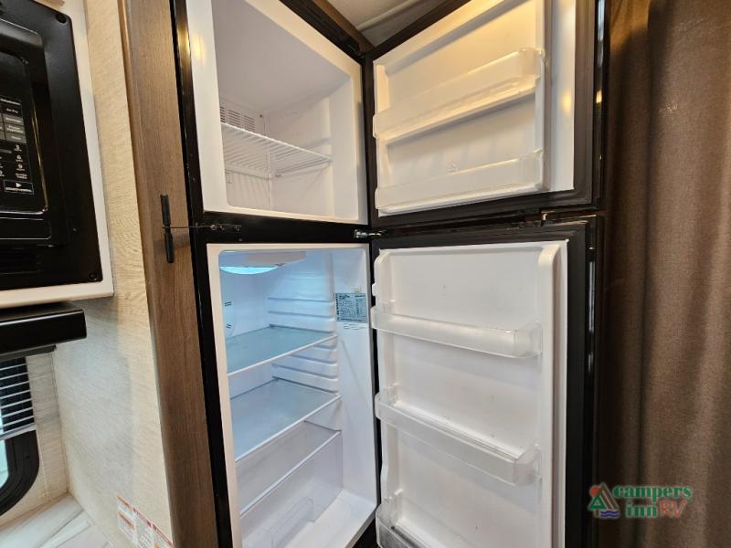 Microwave and double-door refrigerator for meal prep and storage
