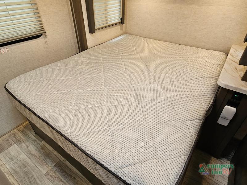 Rear corner queen bed for restful sleep after a day of adventure