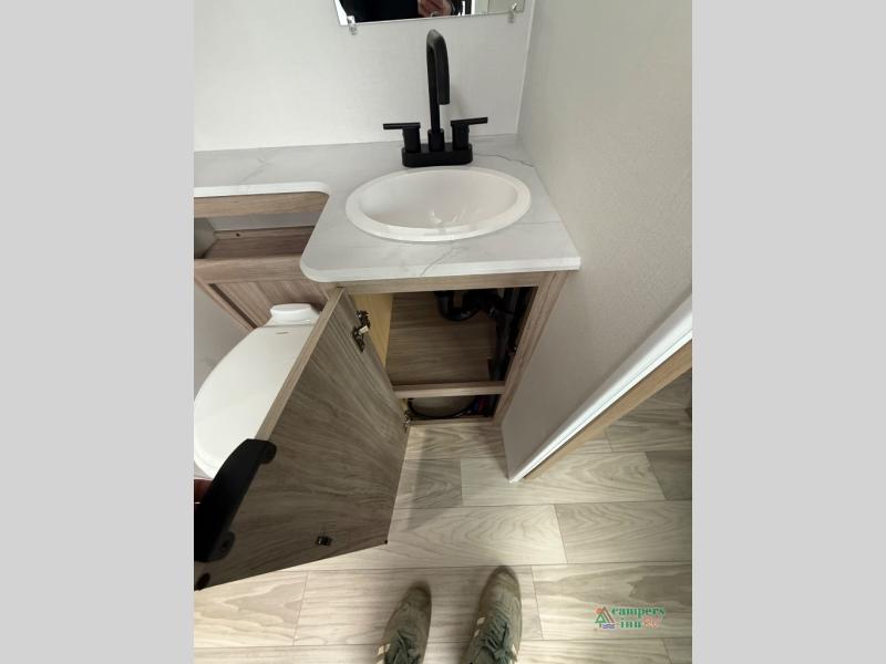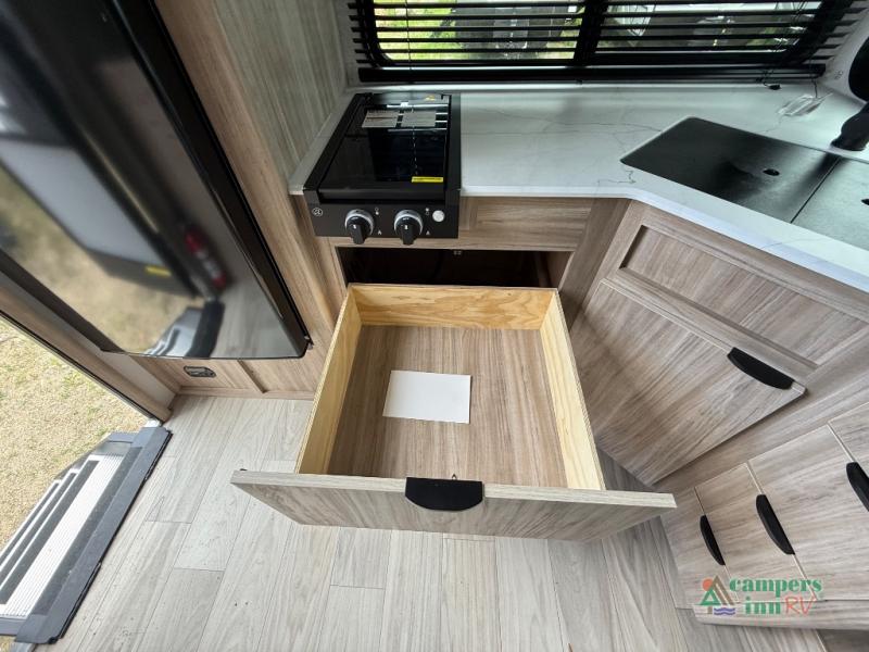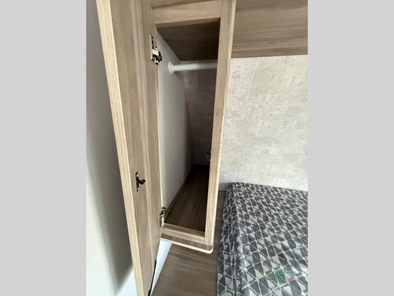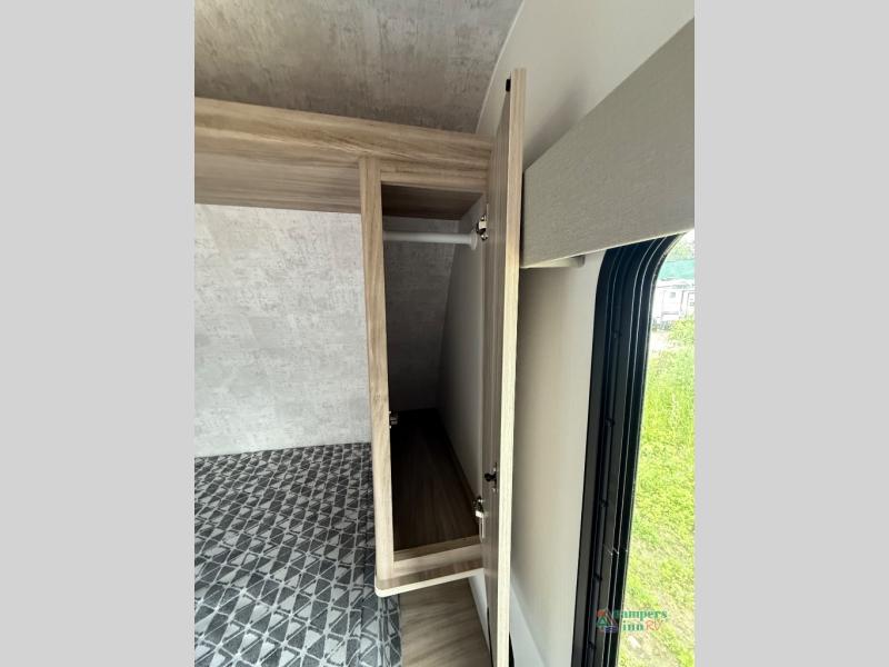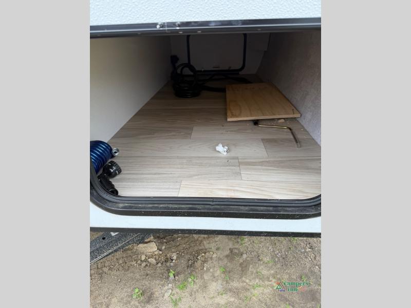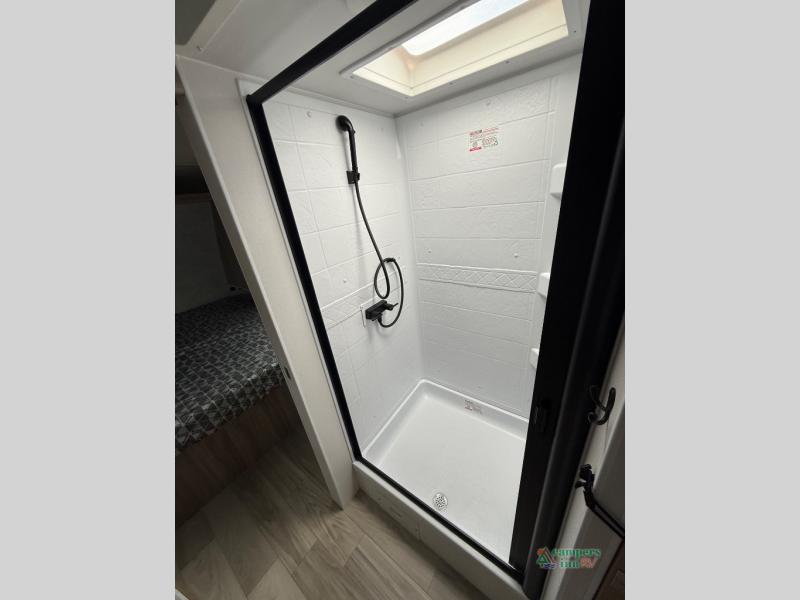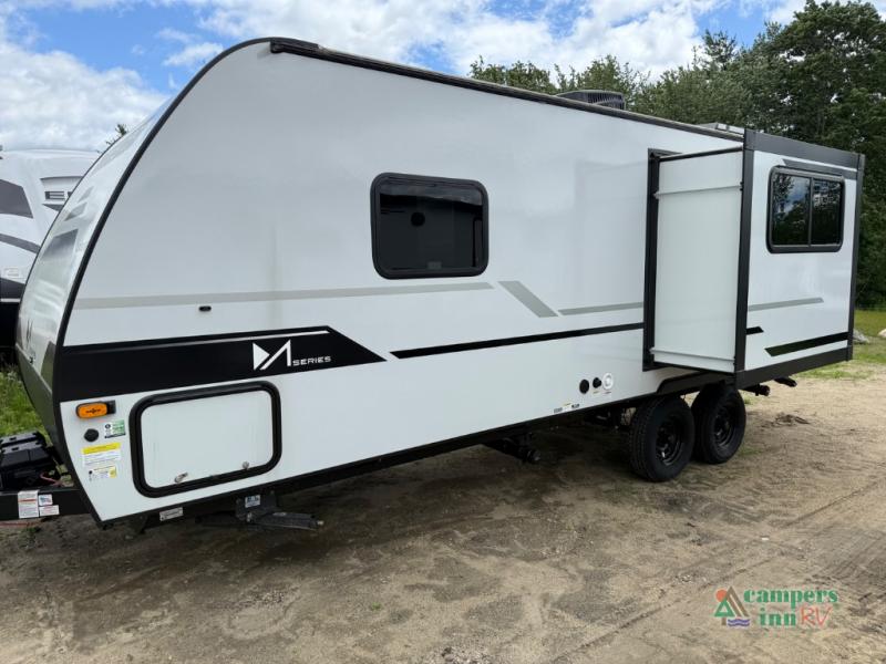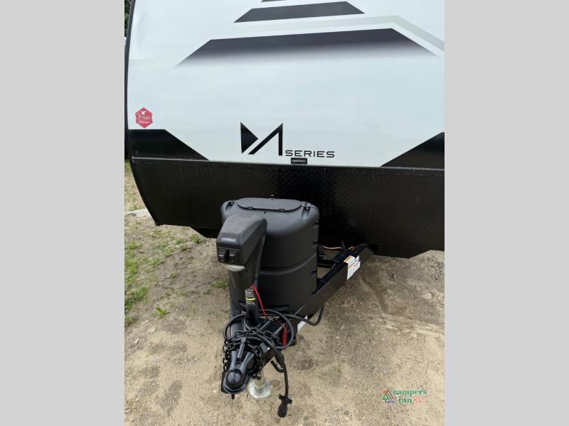 Each M-Series travel trailer features a fully enclosed underbelly, a one piece TPO fully walkable roof, NXG engineered frame with triple solid entry step for ease in entering as well as manual stabilizer jacks that make your time in camp enjoyable. These units feature ample storage both inside and out, plus versatile sleeping arrangements and complete kitchen and baths plus full overlay European style cabinetry, sealed countertops, blackout roller shades for privacy, and a large 14" x 22" skylight over each shower. This perfect blend of practicality and style offers you a functional and comfortable, budget friendly way to camp in an easy to tow trailer. Come choose yours today!